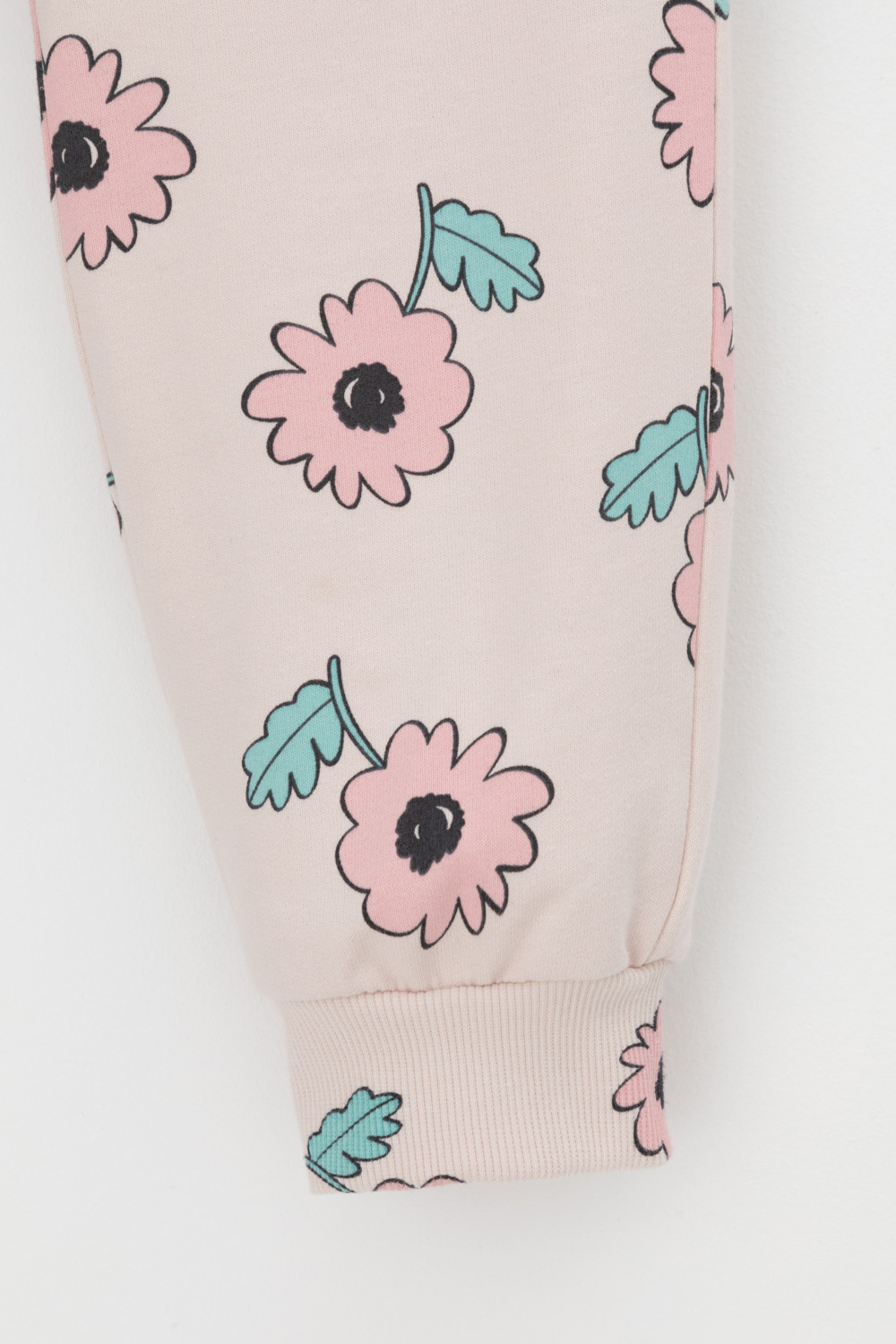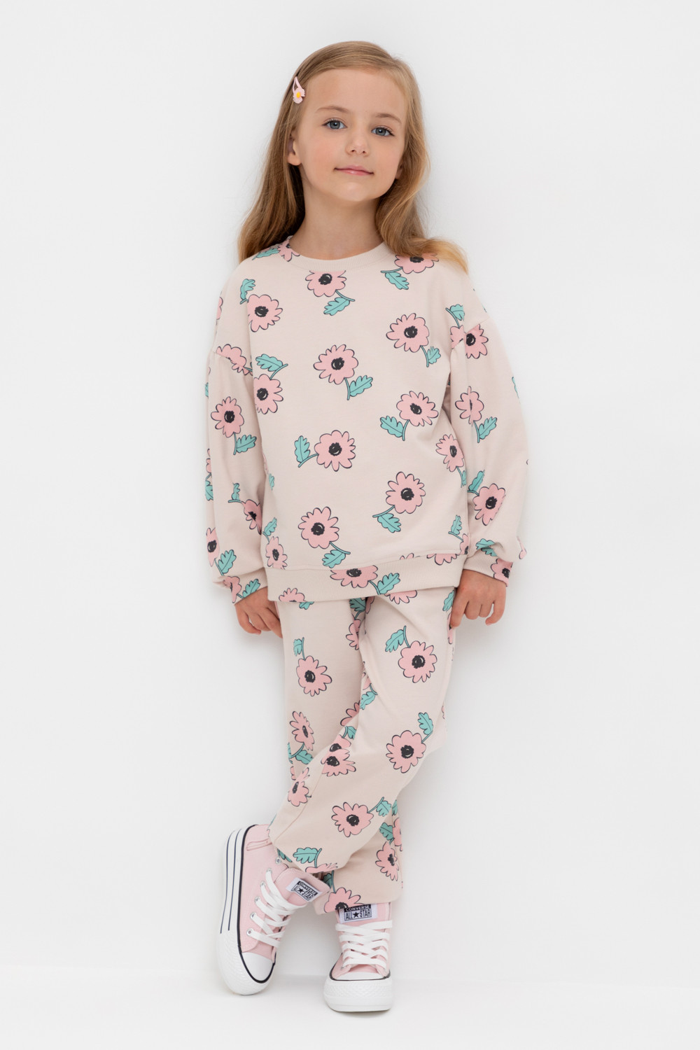 Трикотажные брюки для девочки из петельчатого футера. Эластичный пояс на резинке регулируется по ширине с помощью шнурка, по бокам два удобных кармана, внизу эластичные манжеты.