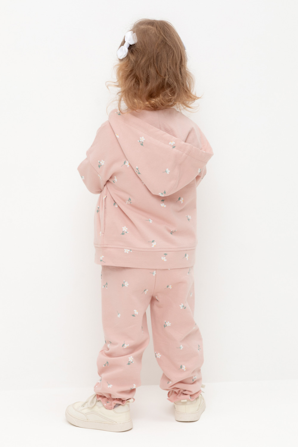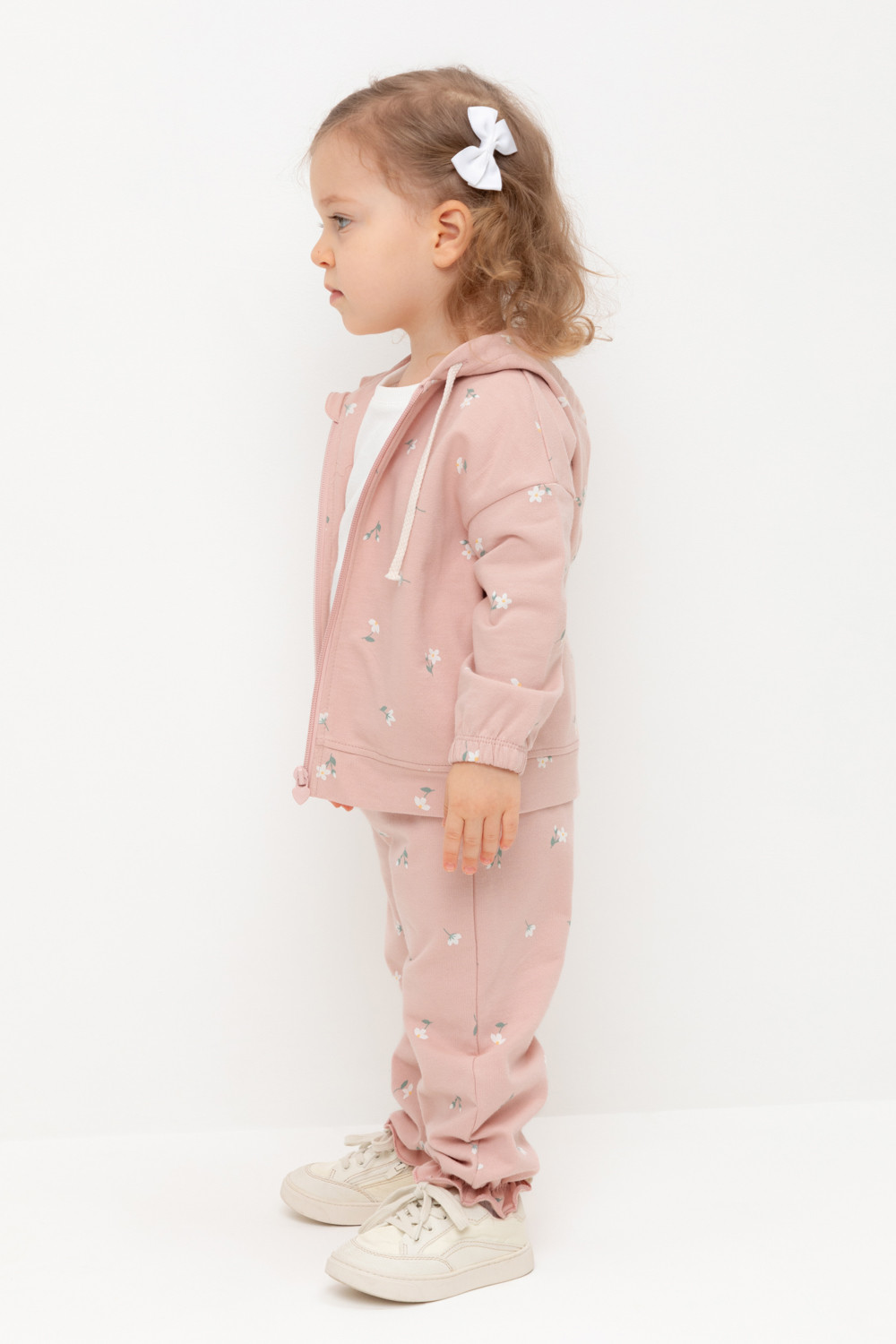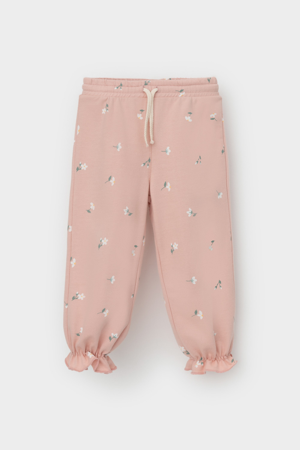 Трикотажные брюки для девочки из мягкого петельчатого футера. Пояс регулируется по ширине при помощи шнурка. Низ собран на резинку. Оригинальная набивка выполнена из стойких текстильных гипоаллергенных красителей. Изделие сохраняет цвет и форму после многократных стирок.