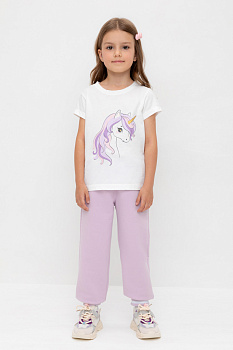 Брюки для девочки из мягкого петельчатого трикотажа. В составе 80% натурального хлопка и 20% полиэстера, при этом полиэстер ввязан внутрь по особой технологии и не соприкасается с кожей. Эластичный пояс на резинке регулируется по ширине с помощью шнурка, по бокам два удобных кармана, внизу эластичные манжеты.