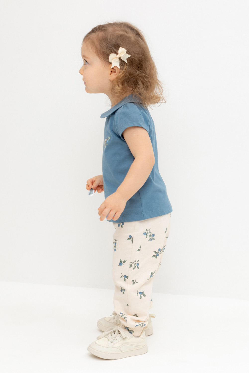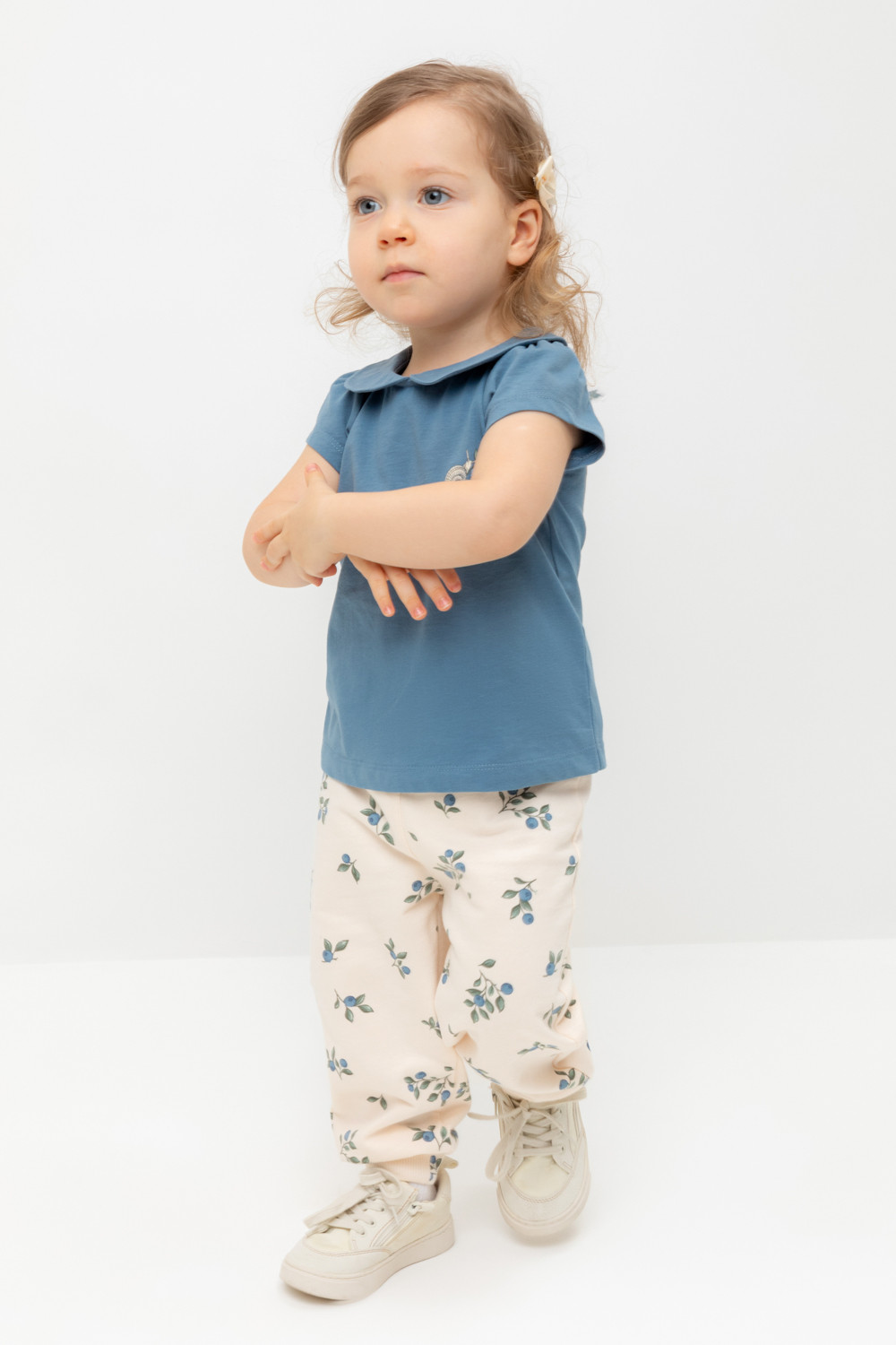 Брюки для девочки из мягкого петельчатого трикотажа. Эластичный пояс на резинке регулируется по ширине с помощью шнурка. Внизу эластичные манжеты.