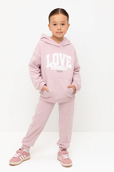 Брюки для девочки из мягкого петельчатого трикотажа. Эластичный пояс на резинке регулируется по ширине с помощью шнурка, по бокам два удобных кармана, внизу эластичные манжеты.
