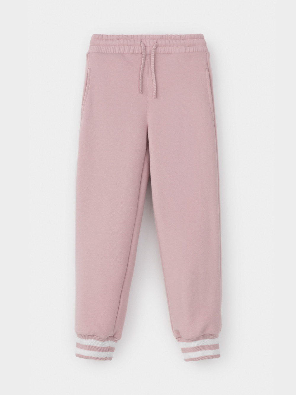 Брюки для девочки из мягкого петельчатого трикотажа. В составе 80% натурального хлопка и 20% полиэстера, при этом полиэстер ввязан внутрь по особой технологии и не соприкасается с кожей. Эластичный пояс на резинке регулируется по ширине с помощью шнурка, по бокам два удобных кармана, внизу эластичные манжеты.