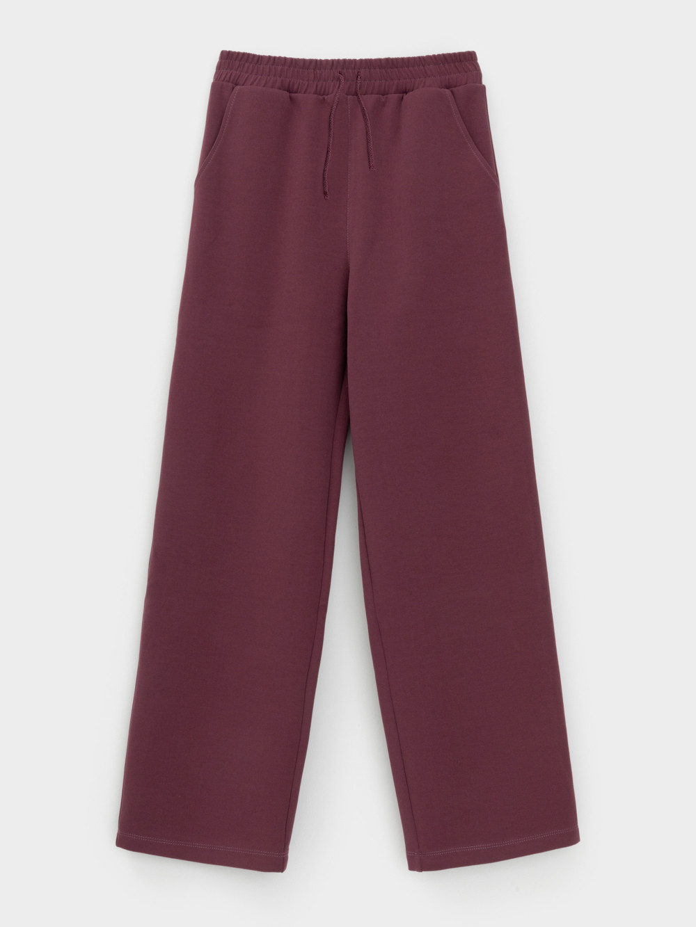 Прямые брюки для девочки. Изготовлены из премиального трикотажного полотна DOUBLE FACE. Эластичный пояс регулируется по ширине с помощью шнурка. По бокам два удобных кармана. Изделие сохраняет цвет и форму после многократных стирок. Все трикотажные полотна производятся в соответствии с нормами швейцарского сертификата ЭкоТекс.