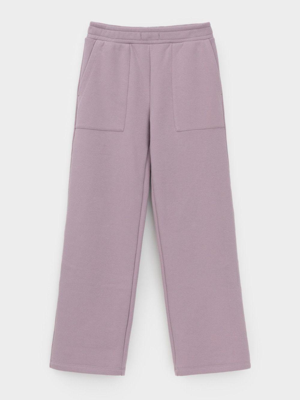 Прямые брюки для девочки из мягкого трикотажа с начёсом. Эластичный пояс на резинке регулируется по ширине с помощью шнурка. По бокам два удобных накладных кармана. Изделие сохраняет цвет и форму после многократных стирок. Все трикотажные полотна производятся в соответствии с нормами швейцарского сертификата ЭкоТекс.