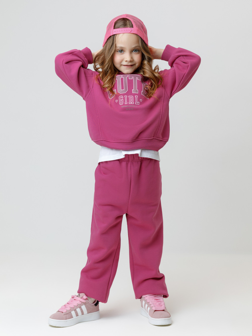 Тёплые брюки с начёсом для девочки. Эластичный пояс на резинке регулируется по ширине с помощью шнурка. По бокам два удобных кармана. Низ на манжетах. Изделие сохраняет цвет и форму после многократных стирок. Все трикотажные полотна производятся в соответствии с нормами швейцарского сертификата ЭкоТекс.
