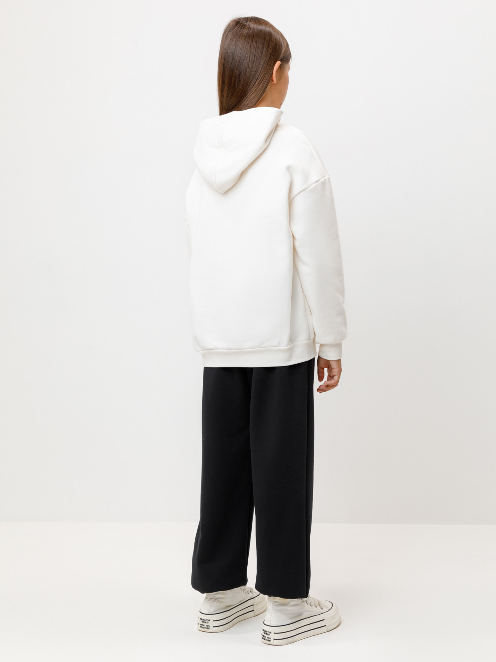 Брюки со стрелками для девочки из мягкого петельчатого трикотажа. В составе 80% натурального хлопка и 20% полиэстера, при этом полиэстер ввязан внутрь по особой технологии и не соприкасается с кожей. Эластичный пояс на резинке регулируется по ширине с помощью шнурка. Внизу эластичные манжеты. По бокам два удобных кармана. Изделие сохраняет цвет и форму после многократных стирок. Все трикотажные полотна производятся в соответствии с нормами швейцарского сертификата ЭкоТекс.