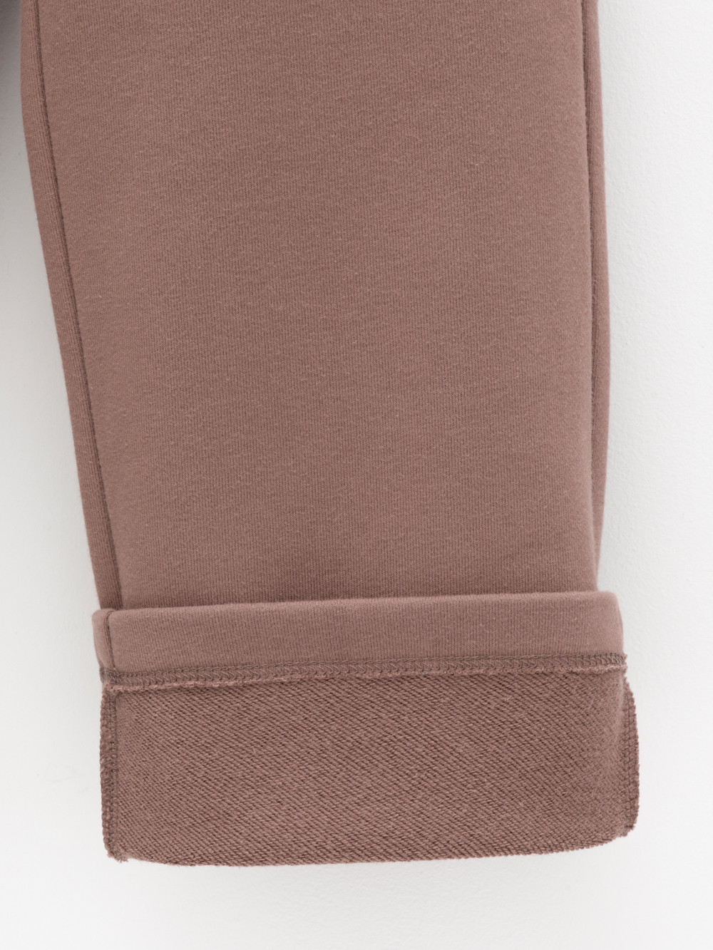 Прямые брюки для девочки из мягкого петельчатого трикотажа. Эластичный пояс на резинке регулируется по ширине с помощью шнурка. По бокам два удобных накладных кармана. Изделие сохраняет цвет и форму после многократных стирок. Все трикотажные полотна производятся в соответствии с нормами швейцарского сертификата ЭкоТекс.