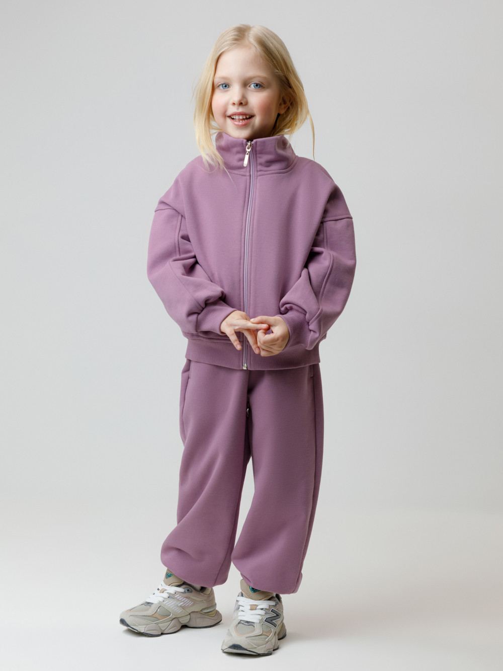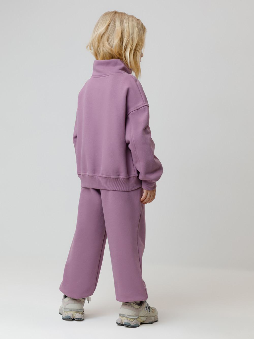 Брюки из мягкого петельчатого футера для девочки. Модель с эластичным поясом на резинке. По бокам два удобных кармана. Низ на манжетах. Изделие сохраняет цвет и форму после многократных стирок. Все трикотажные полотна производятся в соответствии с нормами швейцарского сертификата ЭкоТекс.