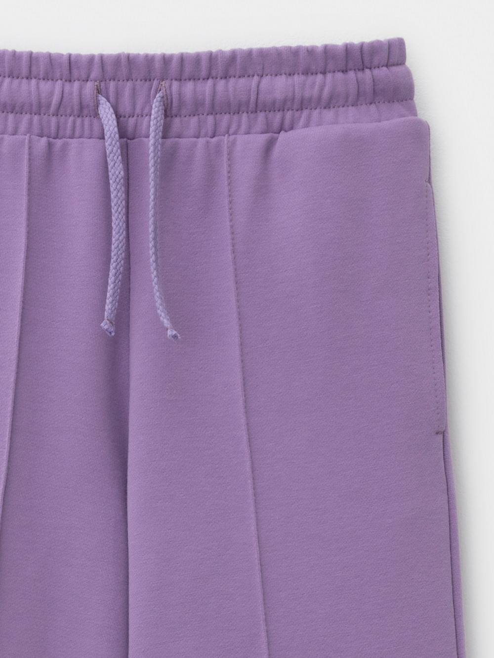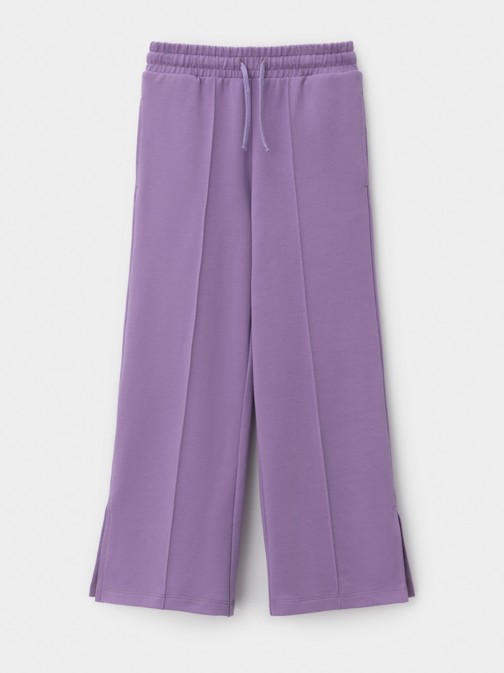 Однотонные брюки со стрелками для девочки. Изготовлены из мягкого петельчатого футера. Модель с эластичным поясом на резинке. Снизу по бокам разрезы. Изделие сохраняет цвет и форму после многократных стирок. Все трикотажные полотна производятся в соответствии с нормами швейцарского сертификата ЭкоТекс.