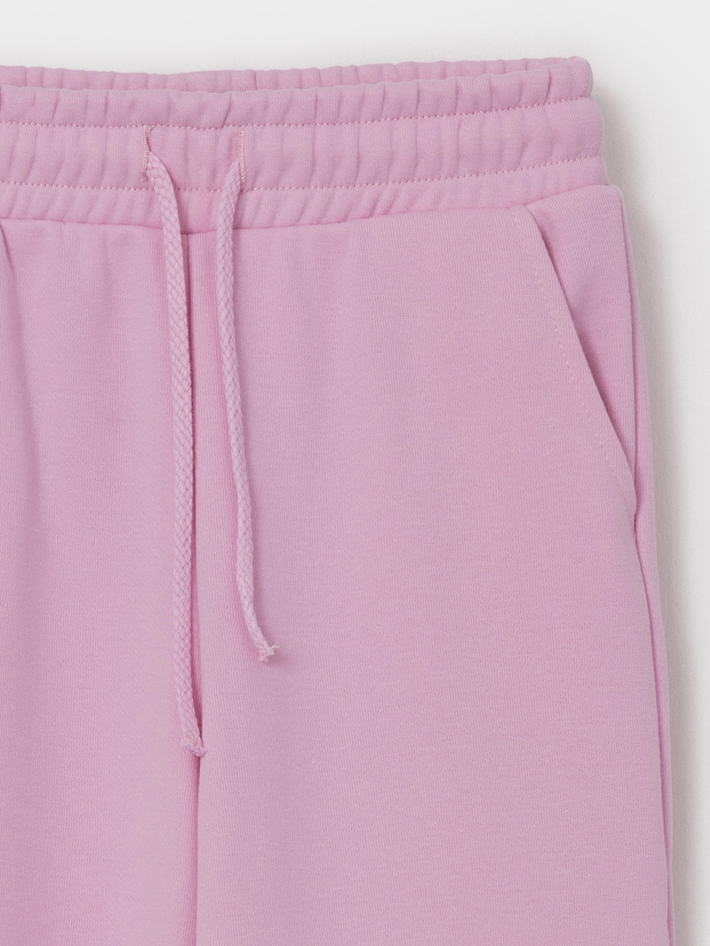 Брюки для девочки из мягкого однотонного футера. В составе 80% натурального хлопка и 20% полиэстера, при этом полиэстер ввязан внутрь по особой технологии и не соприкасается с кожей. Модель с эластичным поясом на резинке и регулировкой по талии с помощью шнурка. Изделие сохраняет цвет и форму после многократных стирок. Все трикотажные полотна производятся в соответствии с нормами швейцарского сертификата ЭкоТекс.