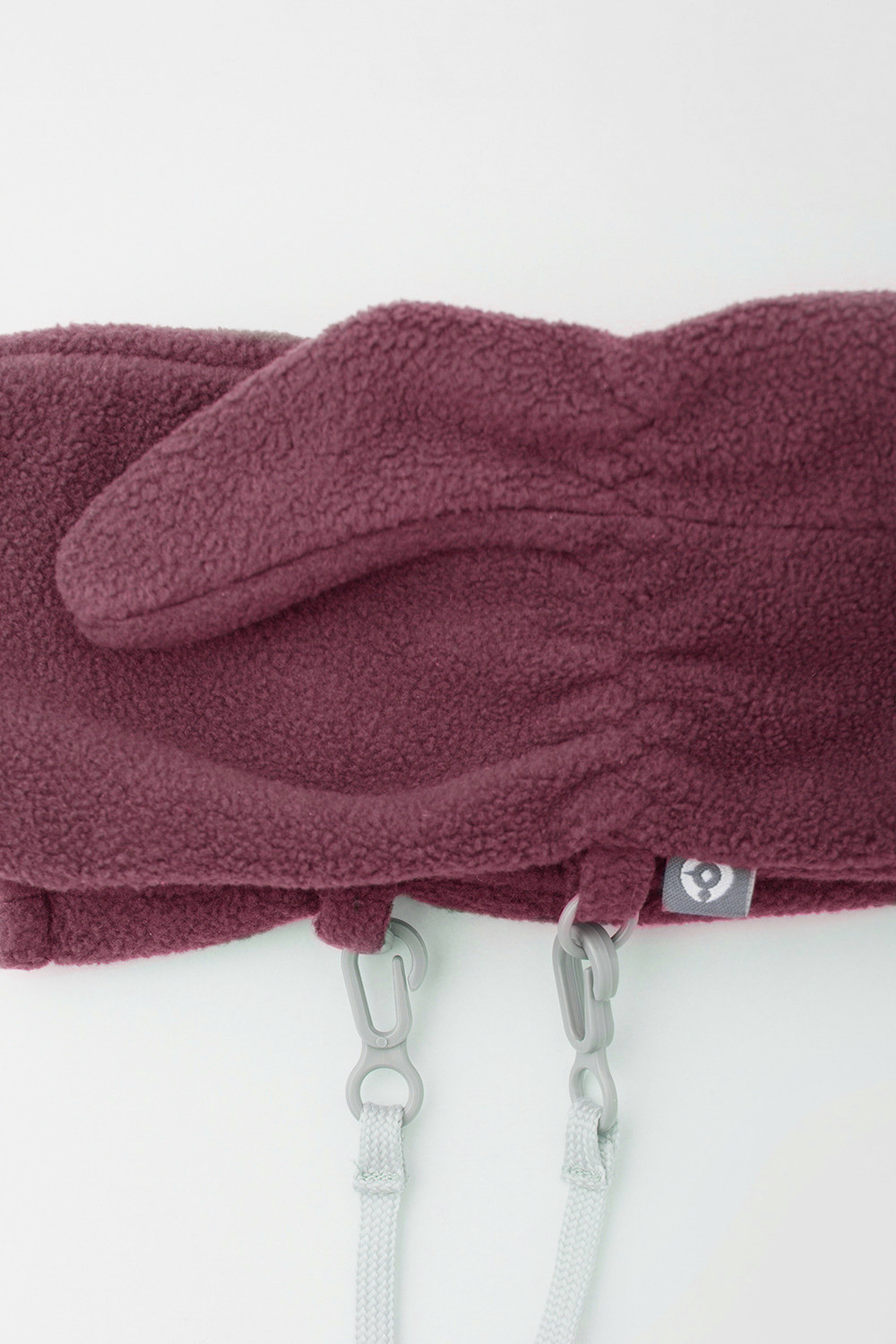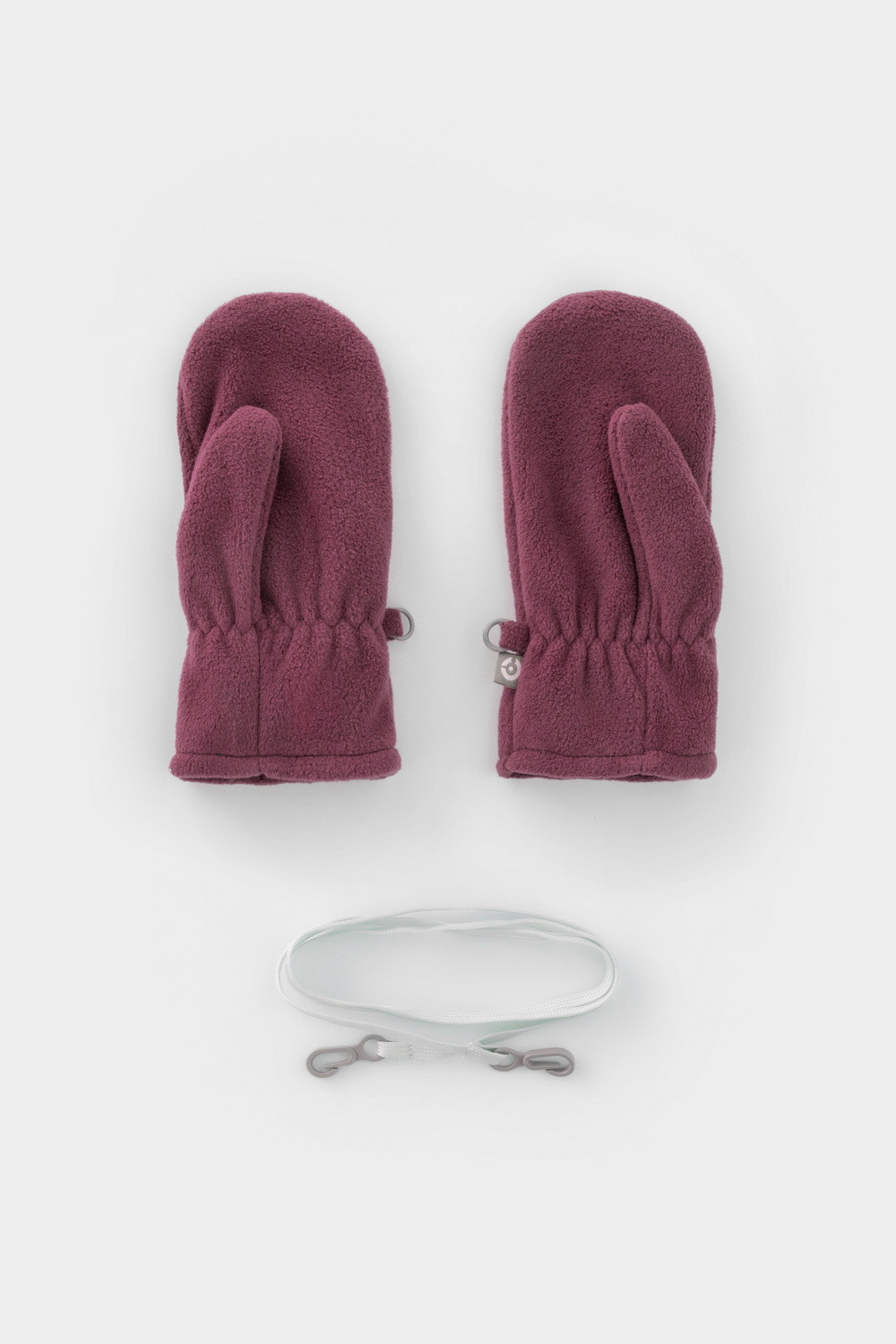 Флисовые варежки детские на шнурке. В области запястья вшита эластичная резинка. Варежки сохраняют цвет и форму после многократных стирок.