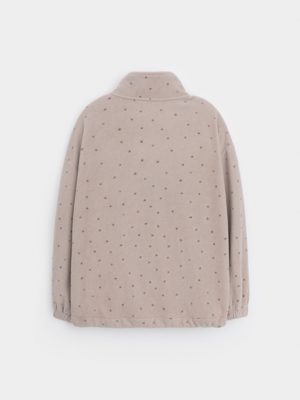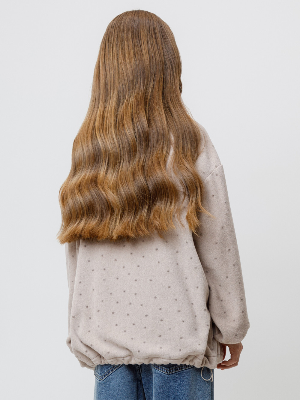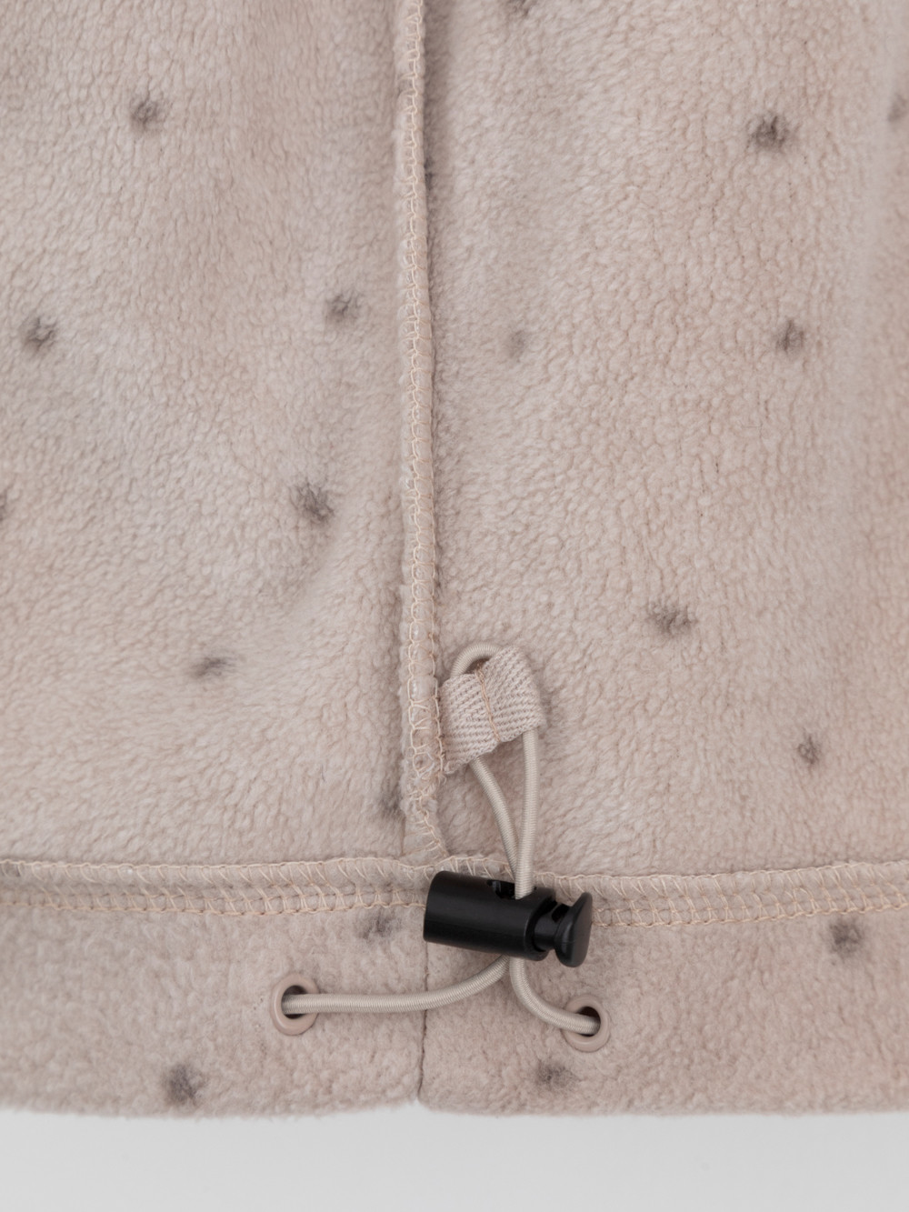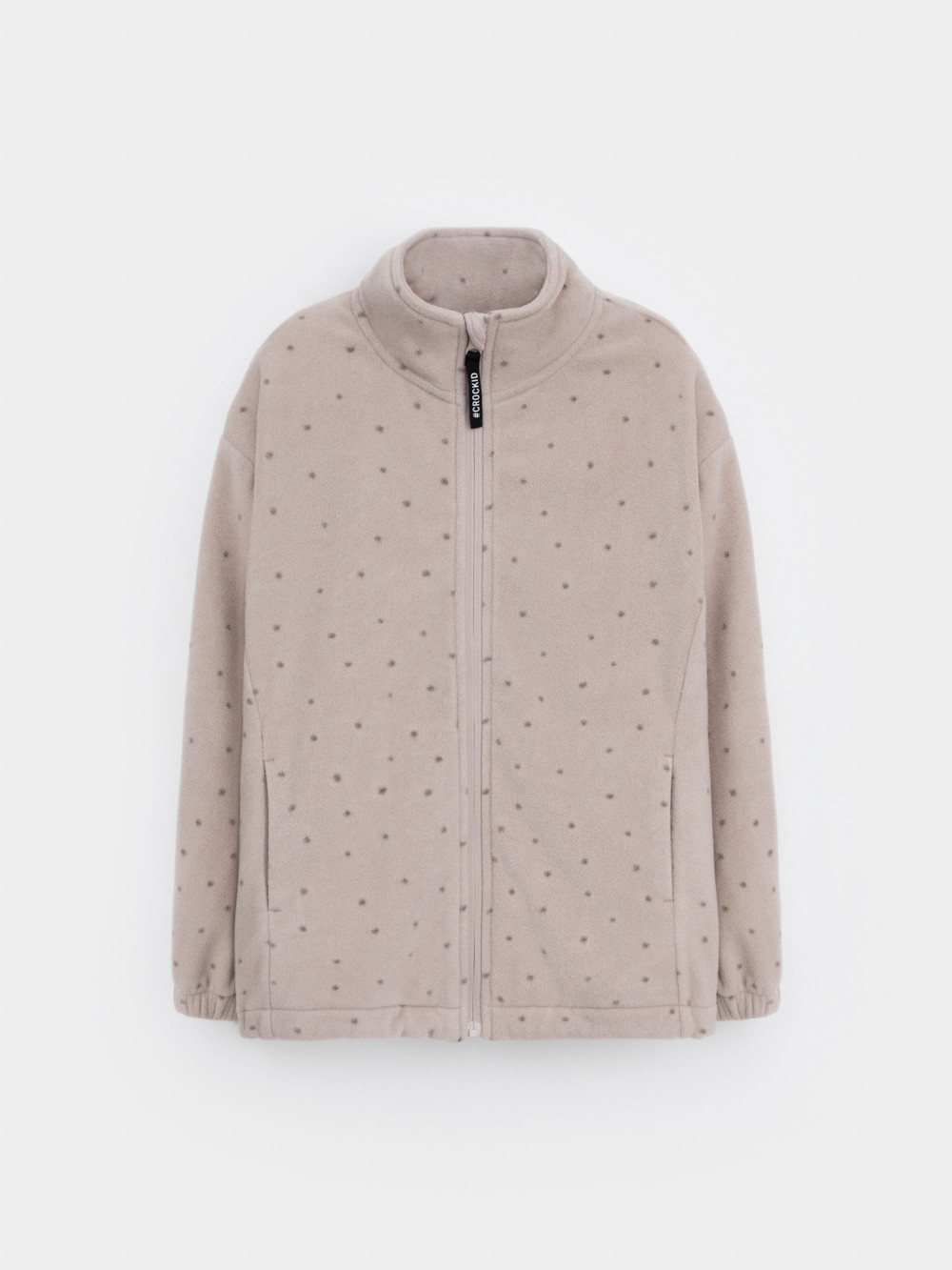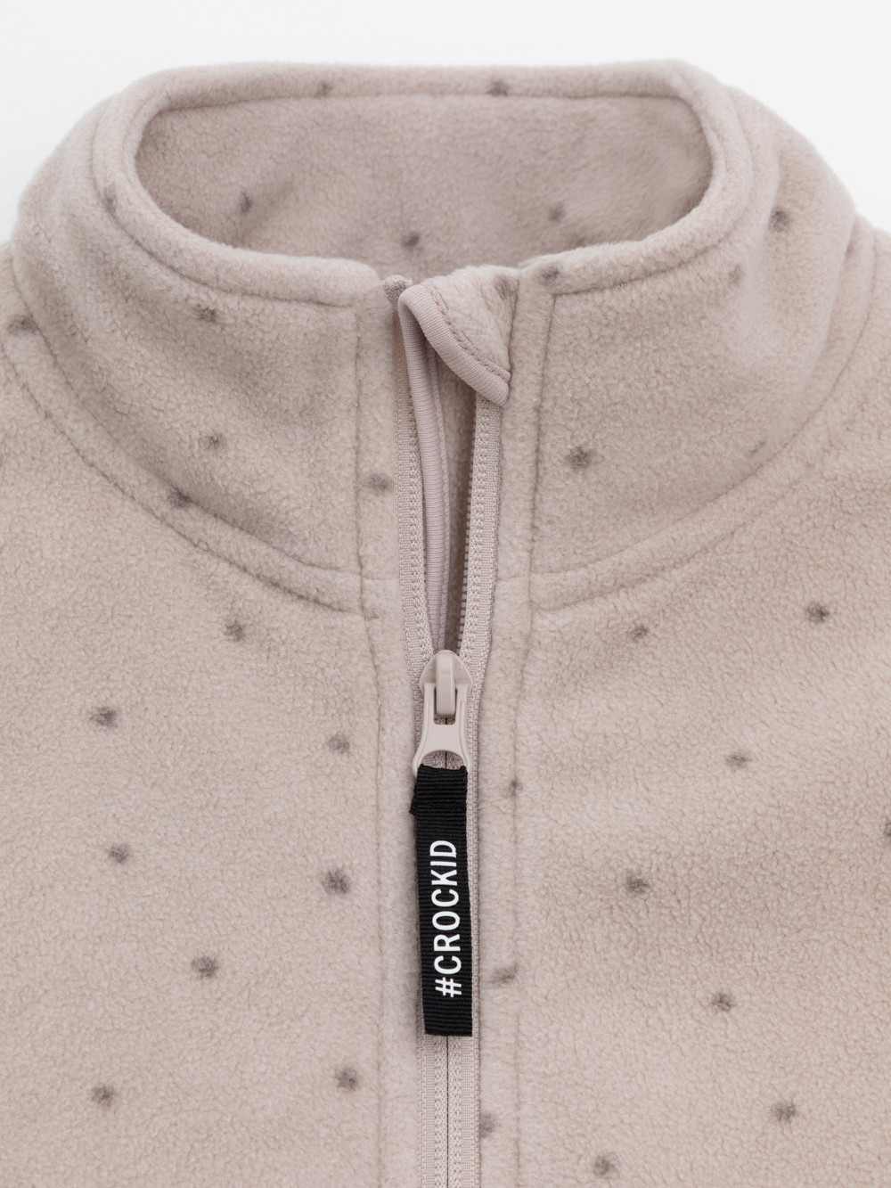 Флисовая куртка для девочки. У изделия высокий воротник и застёжка на молнию с мягкой защитой шеи и подбородка. По бокам два кармана. Рукава собраны на резинку. Низ изделия регулируется по ширине с помощью эластичной утяжки со стопперами. Куртка сохраняет цвет и форму после многократных стирок.