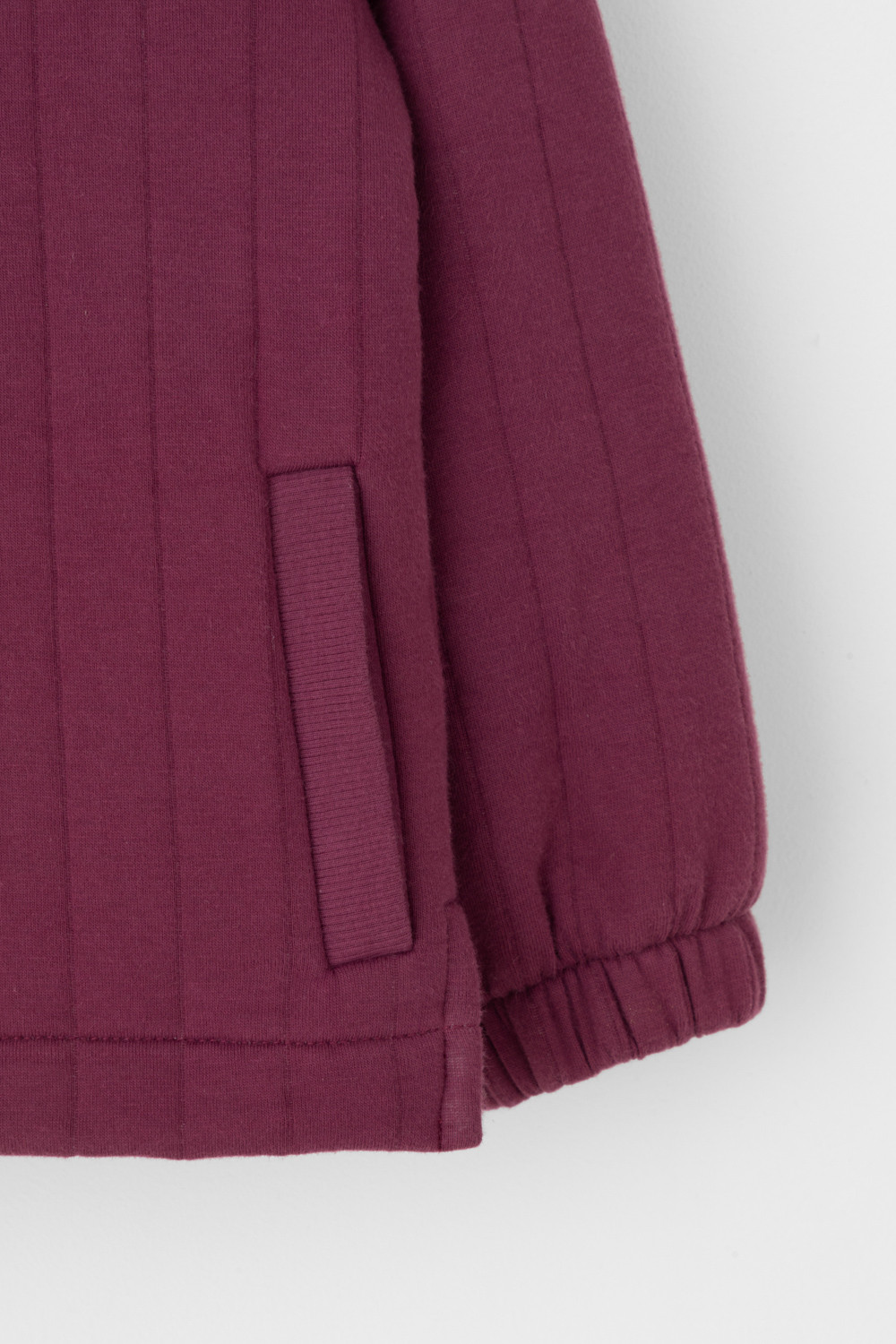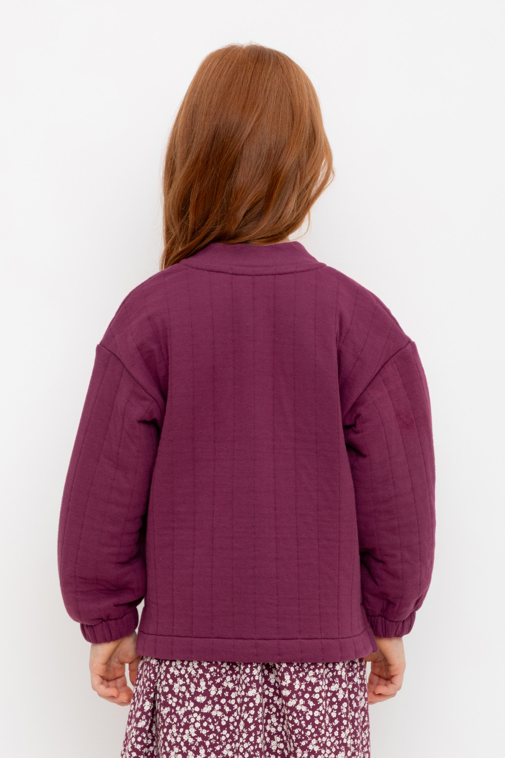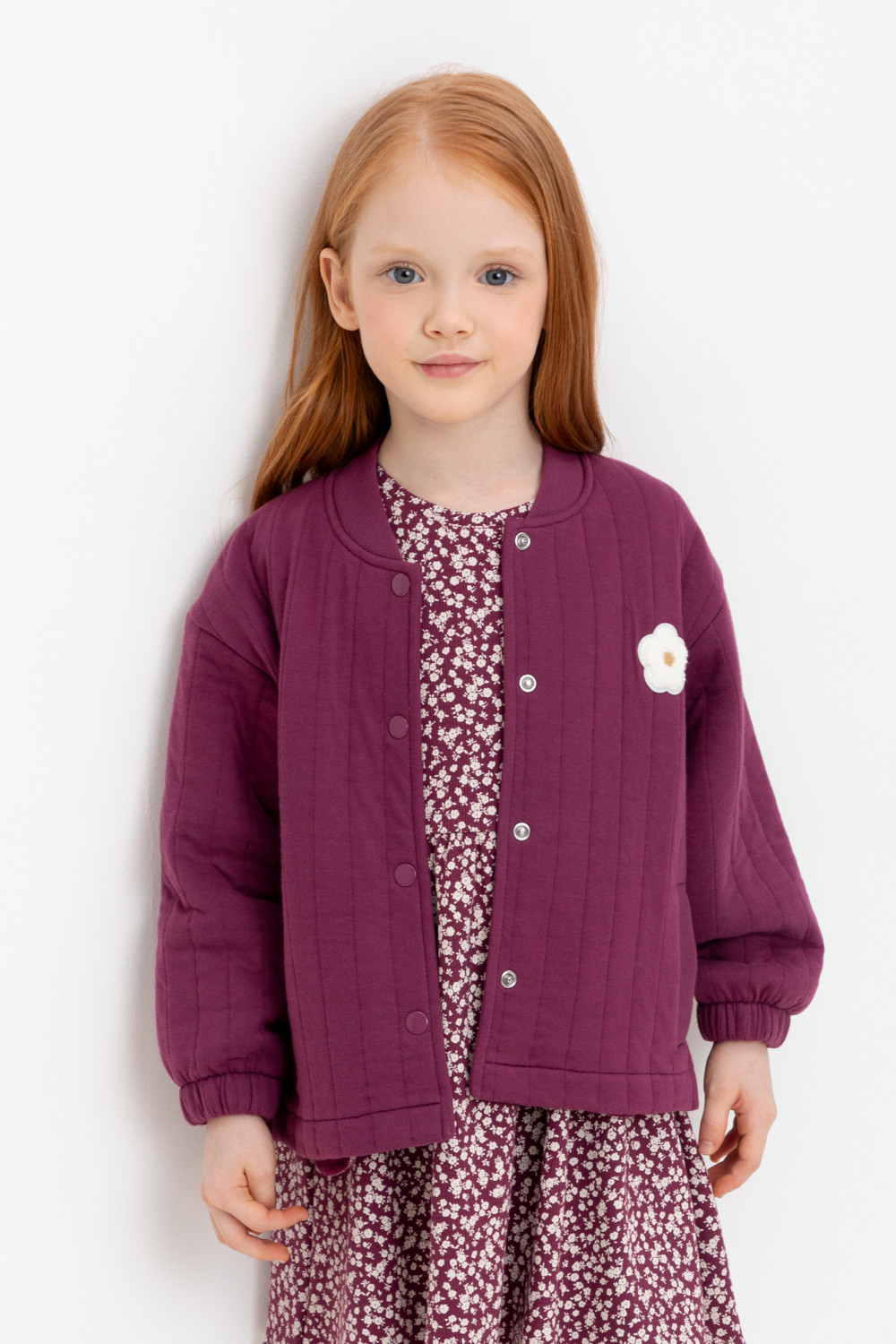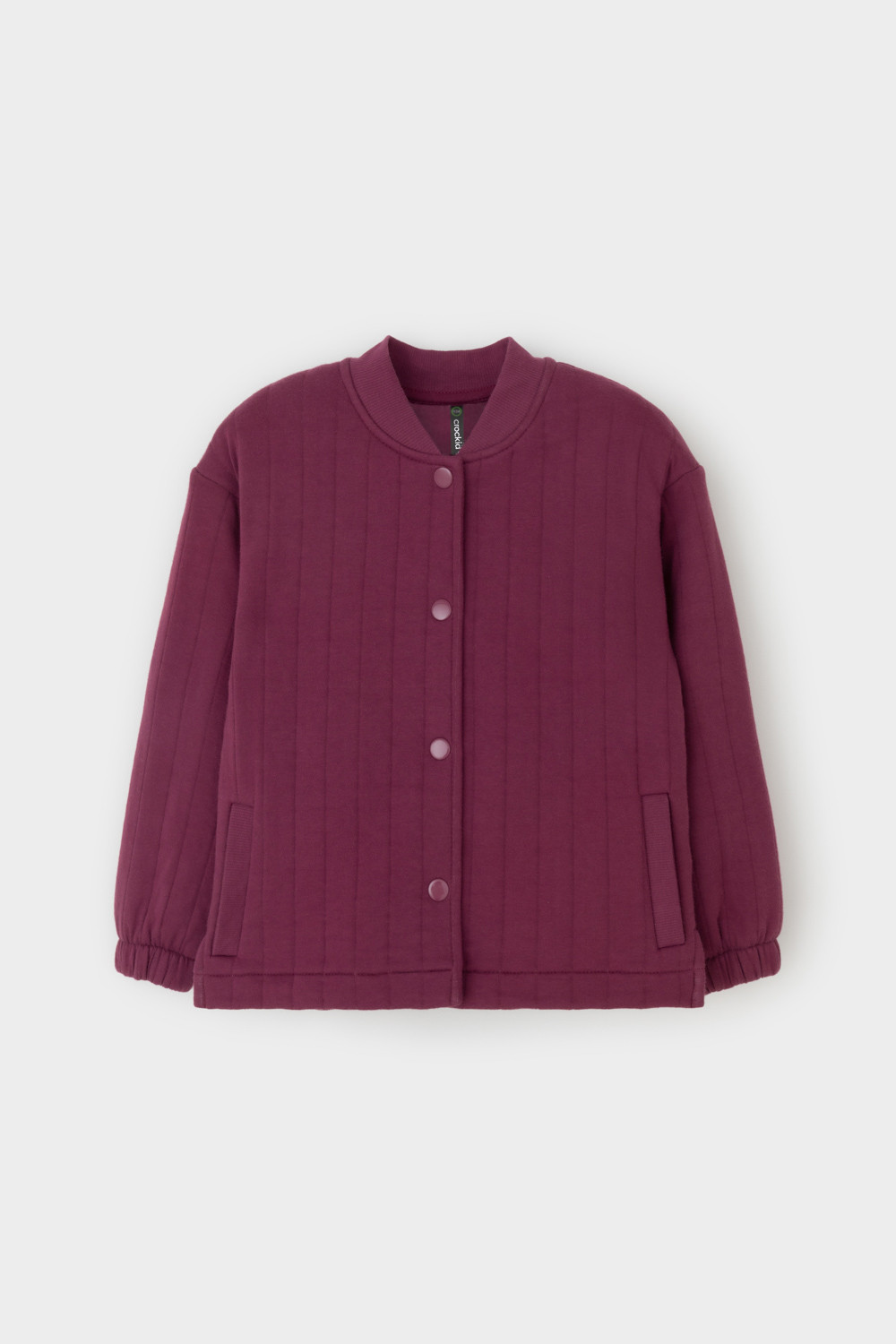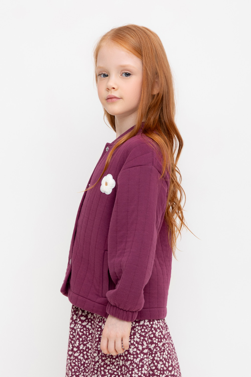 Бомбер на кнопках для девочки из стеганного трикотажного полотна. Удобные боковые карманы, трикотажный манжет по горловине.