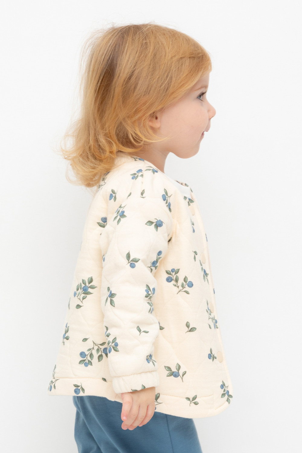 Тёплый бомбер из капитония для девочки. Застёгивается на кнопки. Эластичные манжеты на резинке. Капитоний - это стёганое трикотажное полотно с утеплителем из полиэстеровой нити. Все трикотажные полотна производятся в соответствии с нормами швейцарского сертификата ЭкоТекс.