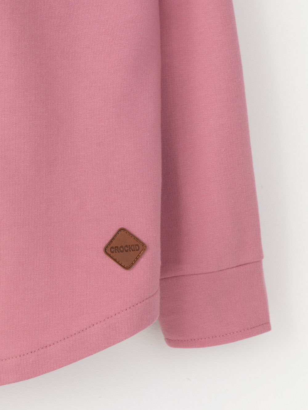 Свободная трикотажная рубашка для девочки из мягкого петельчатого футера. Застёгивается на кнопки. Модель с закругленным низом и спущенным плечом.