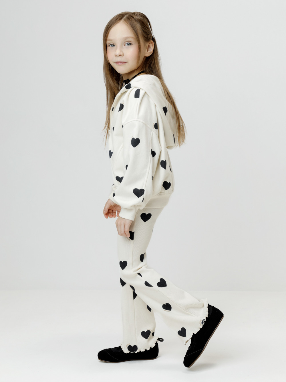 Трикотажная толстовка с капюшоном для девочки. Изготовлена из мягкого футера с оригинальным рисунком. В составе 80% натурального хлопка и 20% полиэстера, при этом полиэстер ввязан внутрь по особой технологии и не соприкасается с кожей. Застёгивается на молнию. Эластичные манжеты и пояс выполнены из полотна в рубчик. Изделие сохраняет цвет и форму после многократных стирок. Все трикотажные полотна производятся в соответствии с нормами швейцарского сертификата ЭкоТекс.