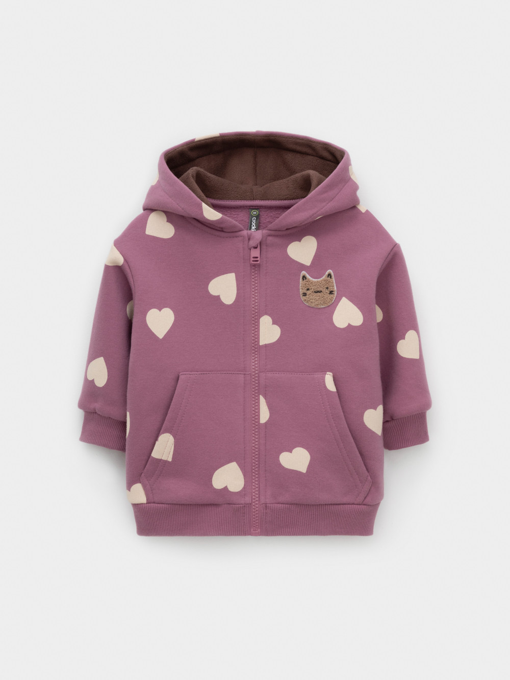Тёплая толстовка для девочки со спущенными плечами. Изготовлена из высококачественного футера с начёсом. Застёгивается на молнию. В капюшоне мягкий подклад из флиса с длинным ворсом. Манжеты и пояс выполнены из эластичного полотна. Спереди удобный вместительный карман-кенгуру. Изделие сохраняет цвет и форму после многократных стирок. Все трикотажные полотна производятся в соответствии с нормами швейцарского сертификата ЭкоТекс.