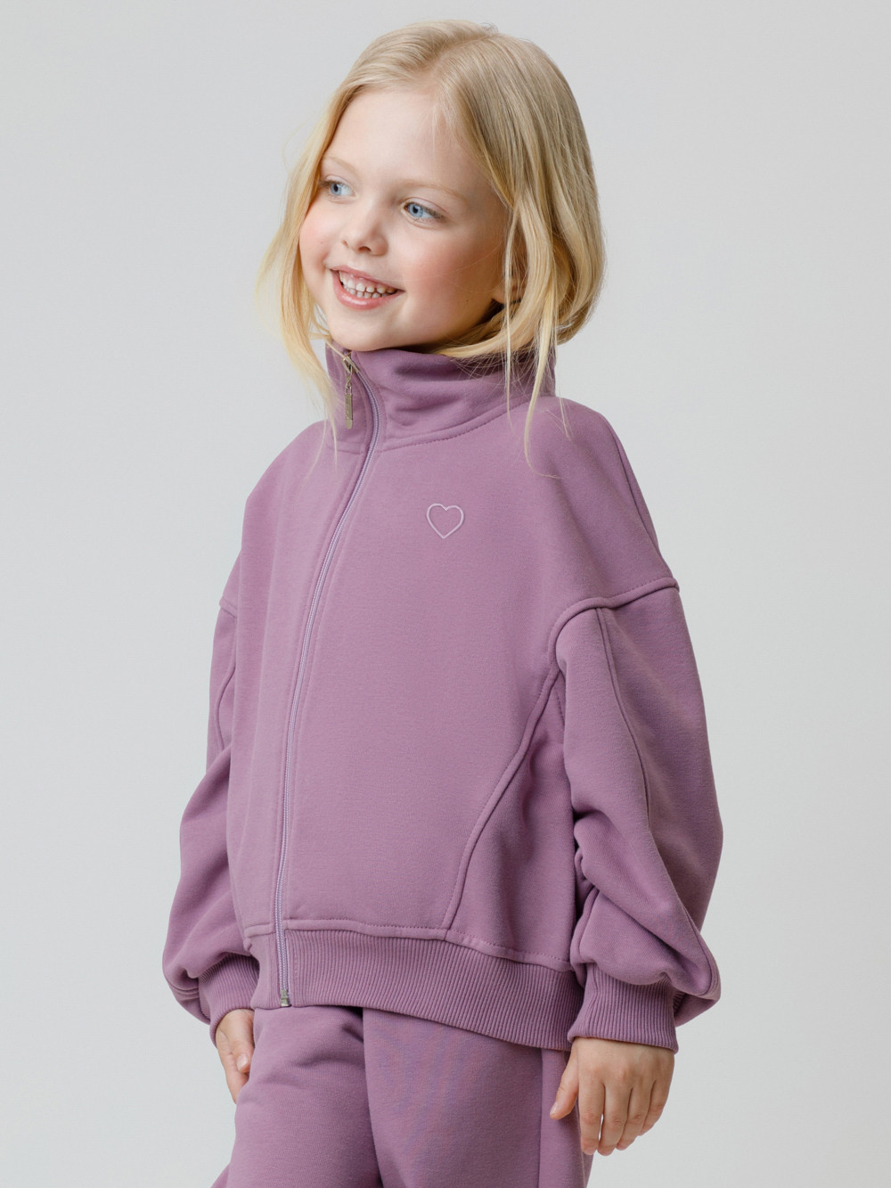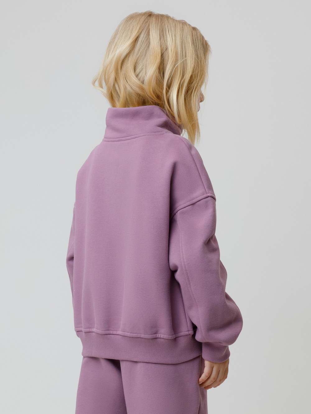 Бомбер для девочки со спущенными плечами и воротником-стойкой. Изготовлен из высококачественного петельчатого футера трёхнитки. Застёгивается на молнию. Манжеты и пояс выполнены из эластичного полотна. Изделие сохраняет цвет и форму после многократных стирок. Все трикотажные полотна производятся в соответствии с нормами швейцарского сертификата ЭкоТекс.