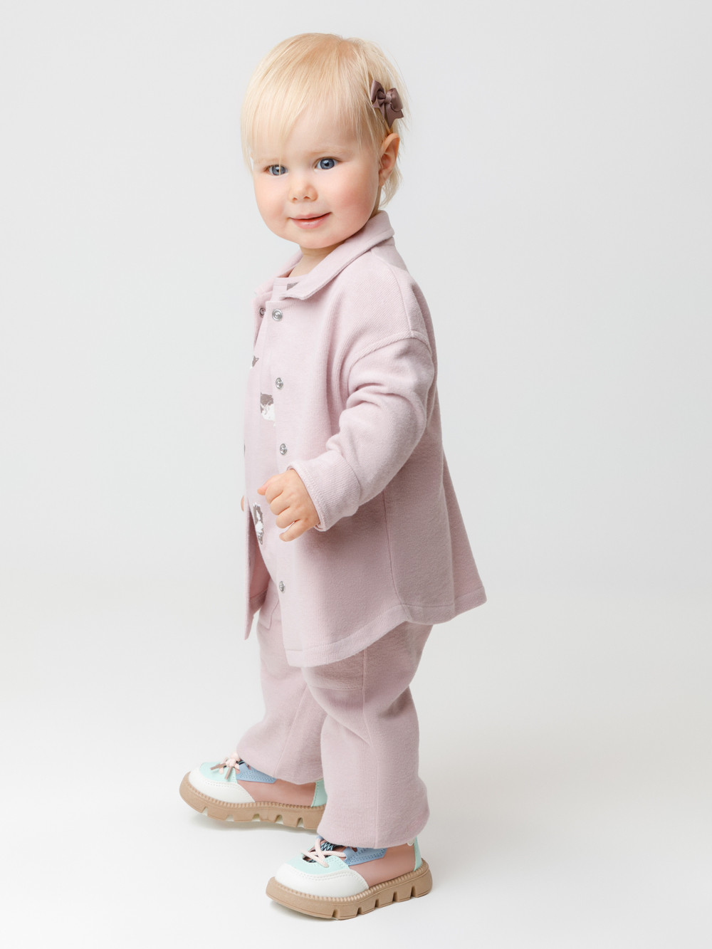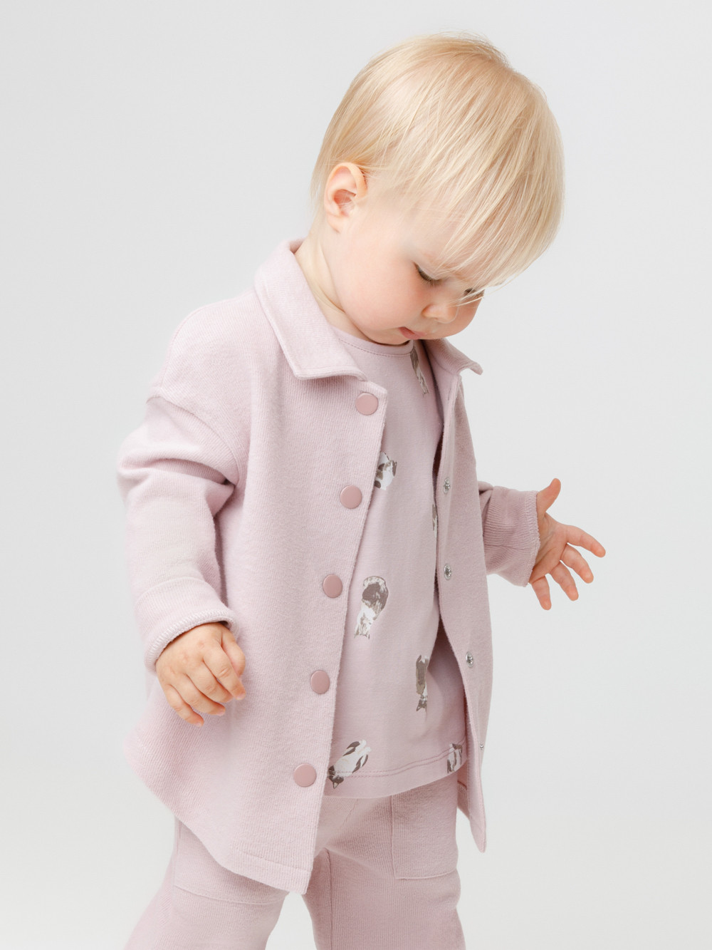 Рубашка свободного кроя для девочки из мягкого трикотажа селаник с peach эффектом. Peach эффект достигается с помощью технологии обработки полотна, при которой на его поверхности создаётся лёгкий ворс, напоминающий нежную текстуру кожи персика. Модель с закруглённым низом и спущенным плечом. Застёгивается на пуговицы. Изделие сохраняет цвет и форму после многократных стирок. Все трикотажные полотна производятся в соответствии с нормами швейцарского сертификата ЭкоТекс.