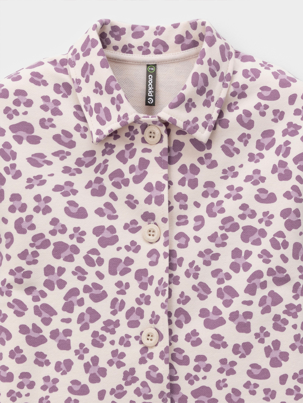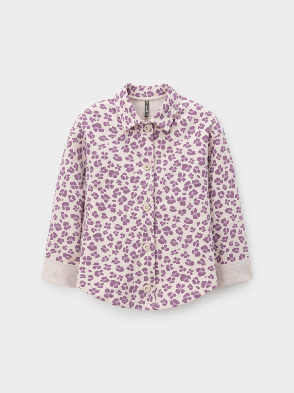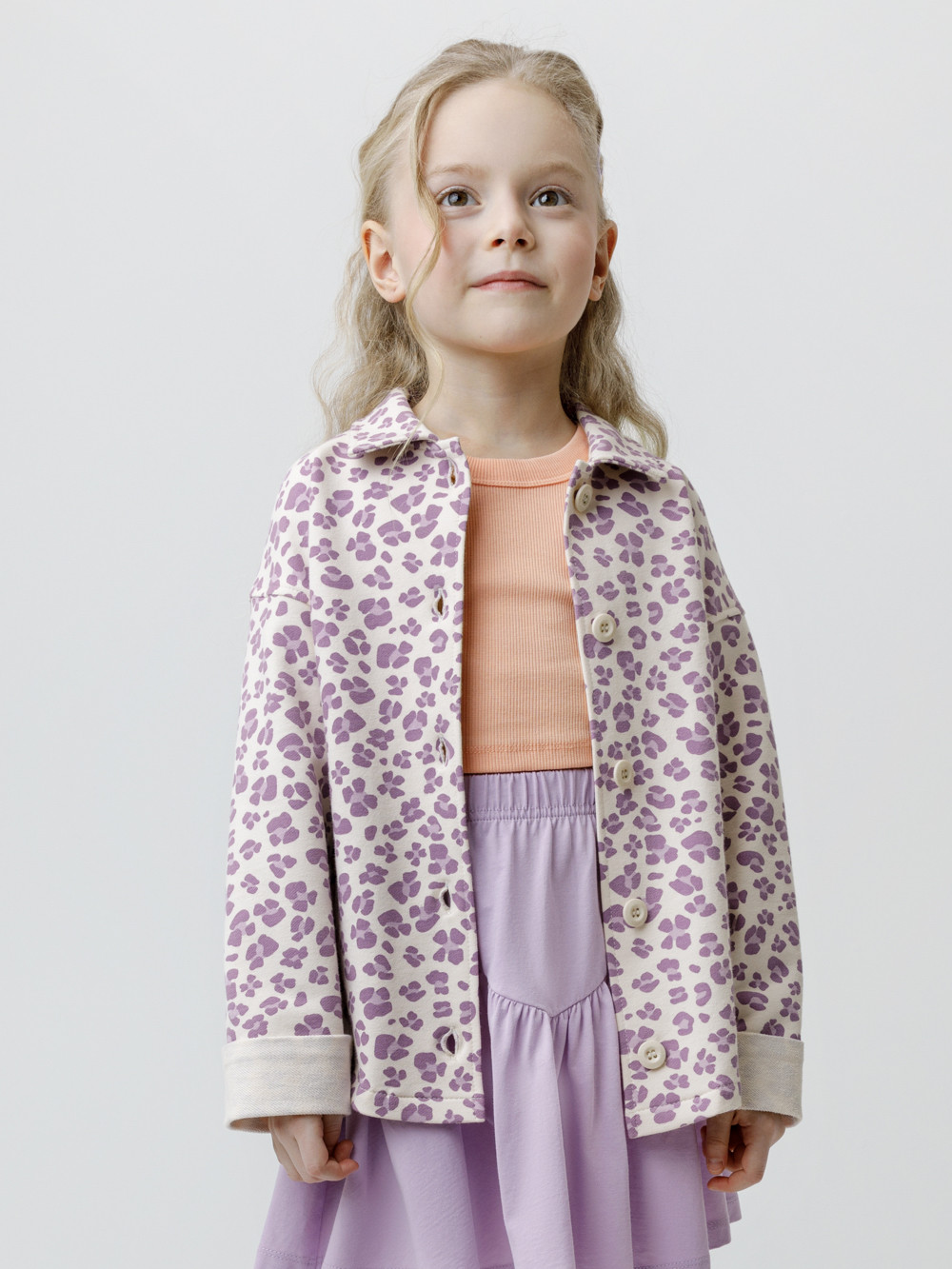 Свободная трикотажная рубашка для девочки из мягкого петельчатого футера. Застёгивается на пуговицы. Модель с закруглённым низом и спущенным плечом. Изделие сохраняет цвет и форму после многократных стирок. Все трикотажные полотна производятся в соответствии с нормами швейцарского сертификата ЭкоТекс.