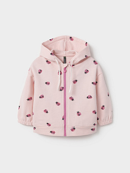 Трикотажная толстовка с капюшоном для девочки. Изготовлена из мягкого набивного футера петли. Застёгивается на молнию с мягкой защитой шеи и подбородка. По бокам два кармана. Манжеты на резинке. По низу пояс из футера. Изделие сохраняет цвет и форму после многократных стирок. Все трикотажные полотна производятся в соответствии с нормами швейцарского сертификата ЭкоТекс.