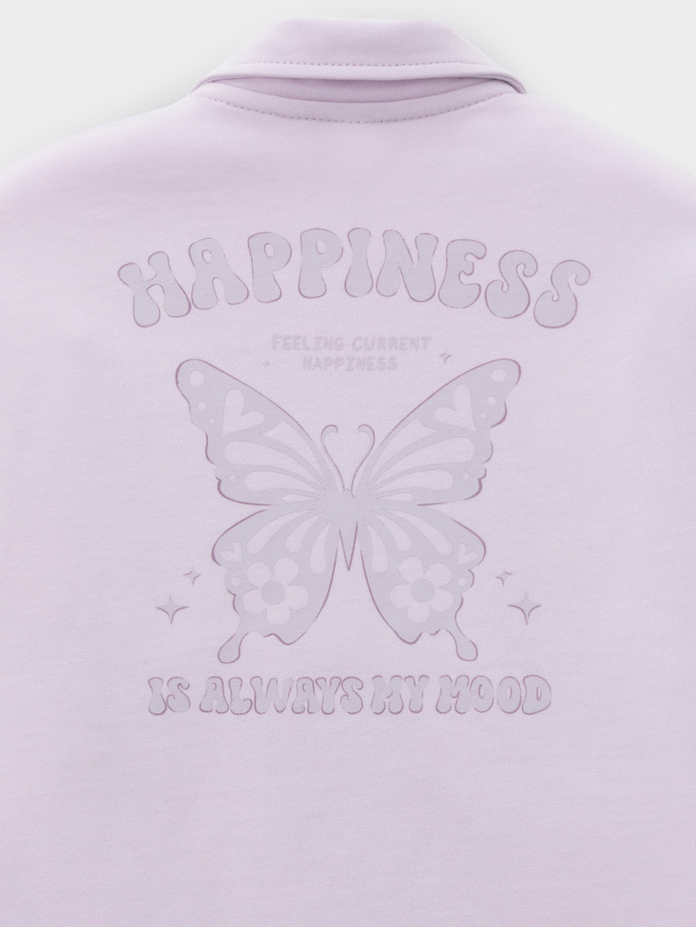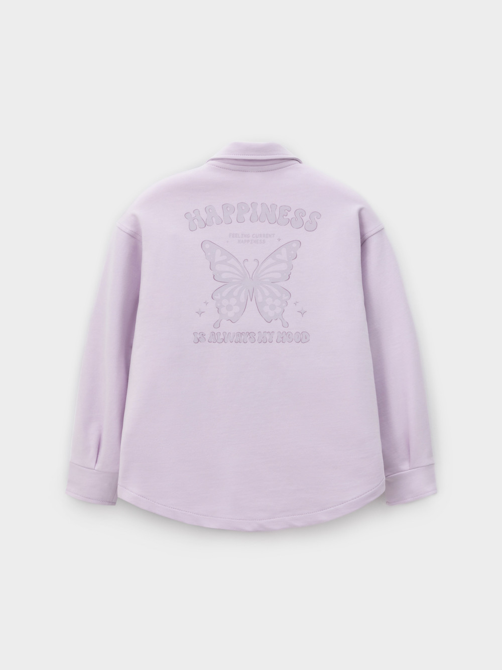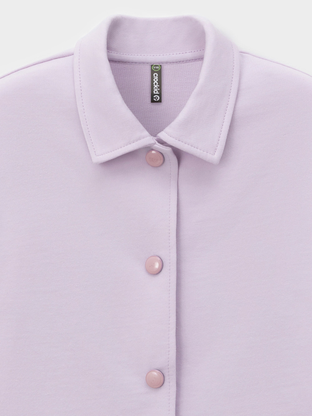 Свободная трикотажная рубашка для девочки из мягкого петельчатого футера. Застёгивается на кнопки. Модель с закруглённым низом и спущенным плечом. Принт на спинке выполнен из стойких текстильных гипоаллергенных красителей. Изделие сохраняет цвет и форму после многократных стирок. Все трикотажные полотна производятся в соответствии с нормами швейцарского сертификата ЭкоТекс.