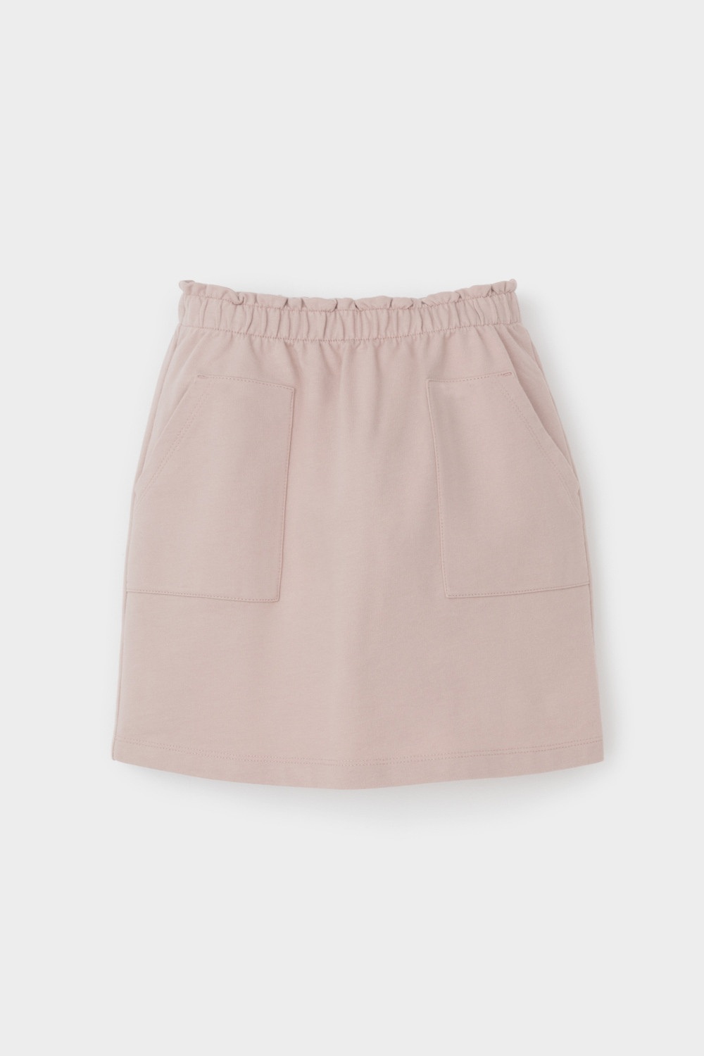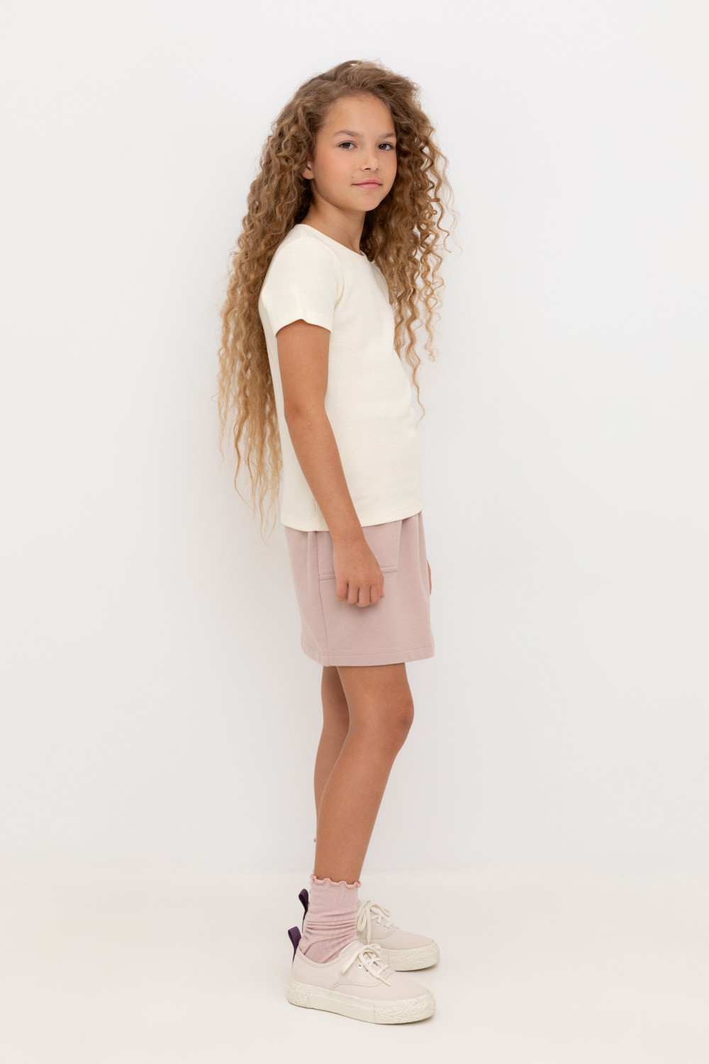 Юбка для девочки с накладными карманами из петельчатого футера. Пояс по ширине регулируется репсовой лентой.