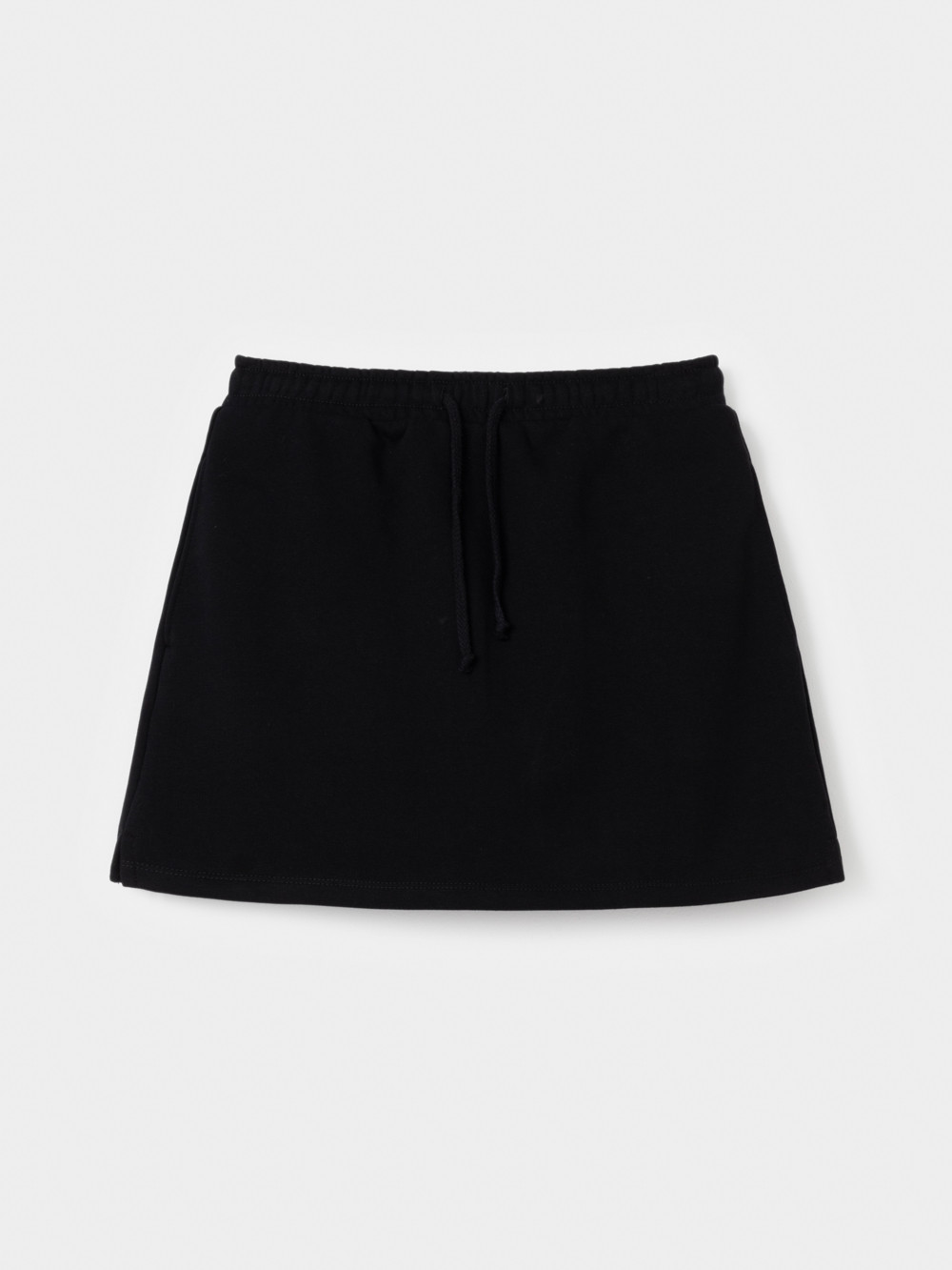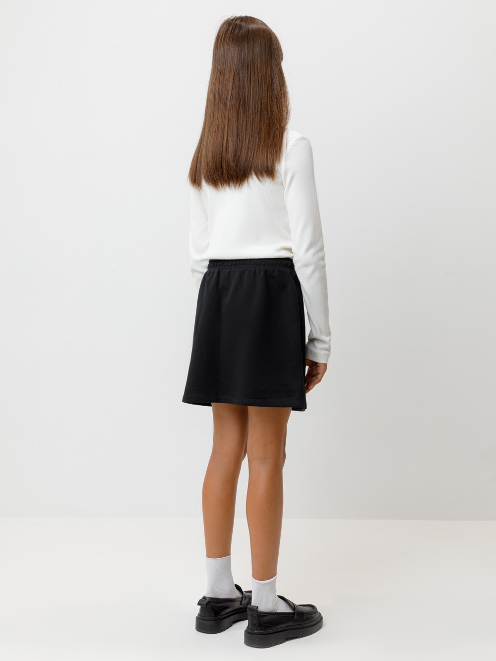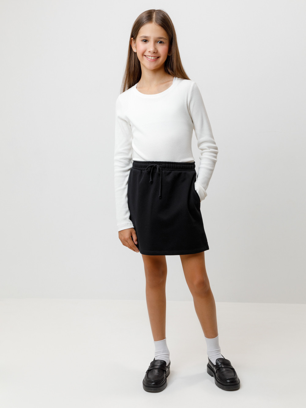 Юбка с карманами для девочки. Изготовлена из мягкого петельчатого трикотажа. В составе 80% натурального хлопка и 20% полиэстера, при этом полиэстер ввязан внутрь по особой технологии и не соприкасается с кожей. Модель имеет эластичный пояс на резинке со шнурком для регулировки по ширине талии. Изделие сохраняет цвет и форму после многократных стирок. Все трикотажные полотна производятся в соответствии с нормами швейцарского сертификата ЭкоТекс.