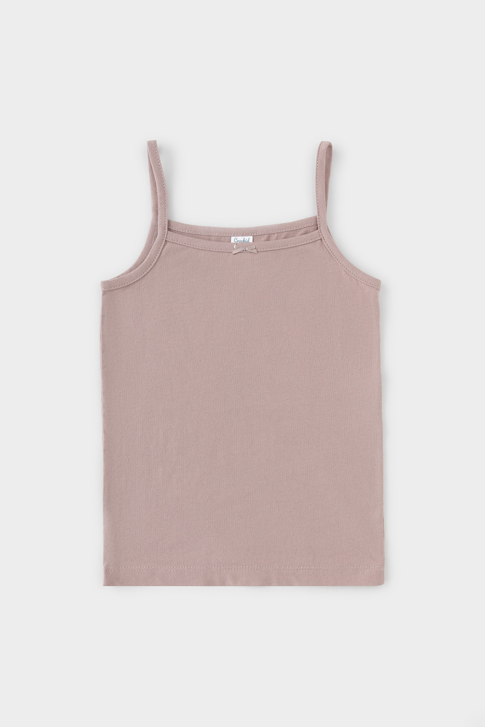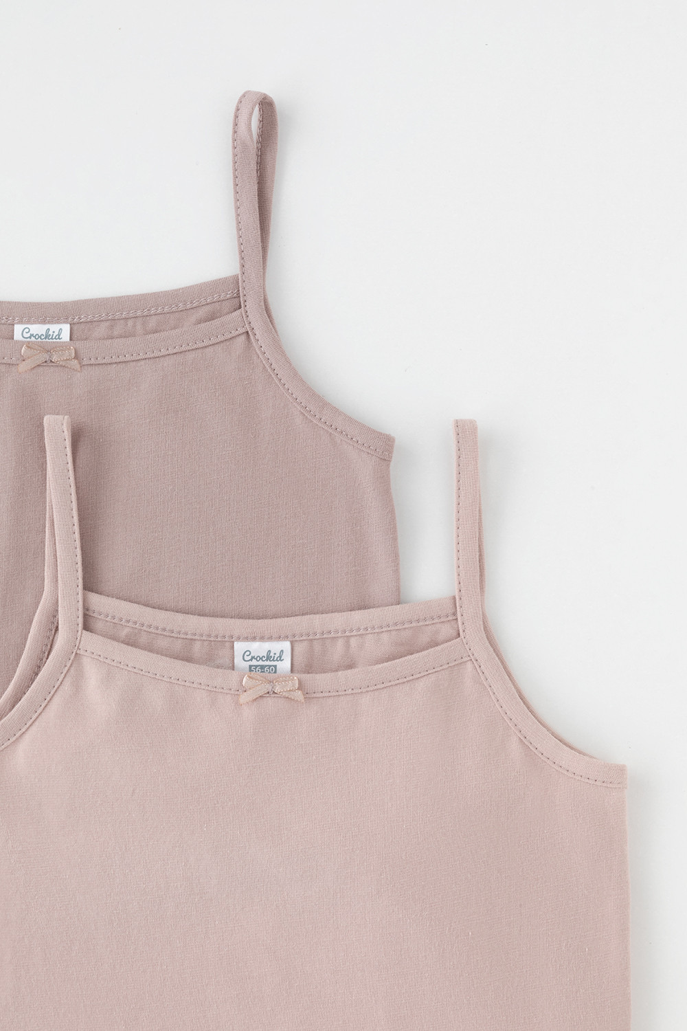 Трикотажные майки в комплекте 2 шт на тонких бретелях из однотонного супрема с эластаном, горловина спинки и проймы обработаны кантом, по горловине полочки декоративная эластичная тесьма и атласный бантик. Сохраняют цвет и форму после многократных стирок. Все трикотажные полотна производятся в соответсвии с нормами Швейцарского сертификата ЭкоТекс.