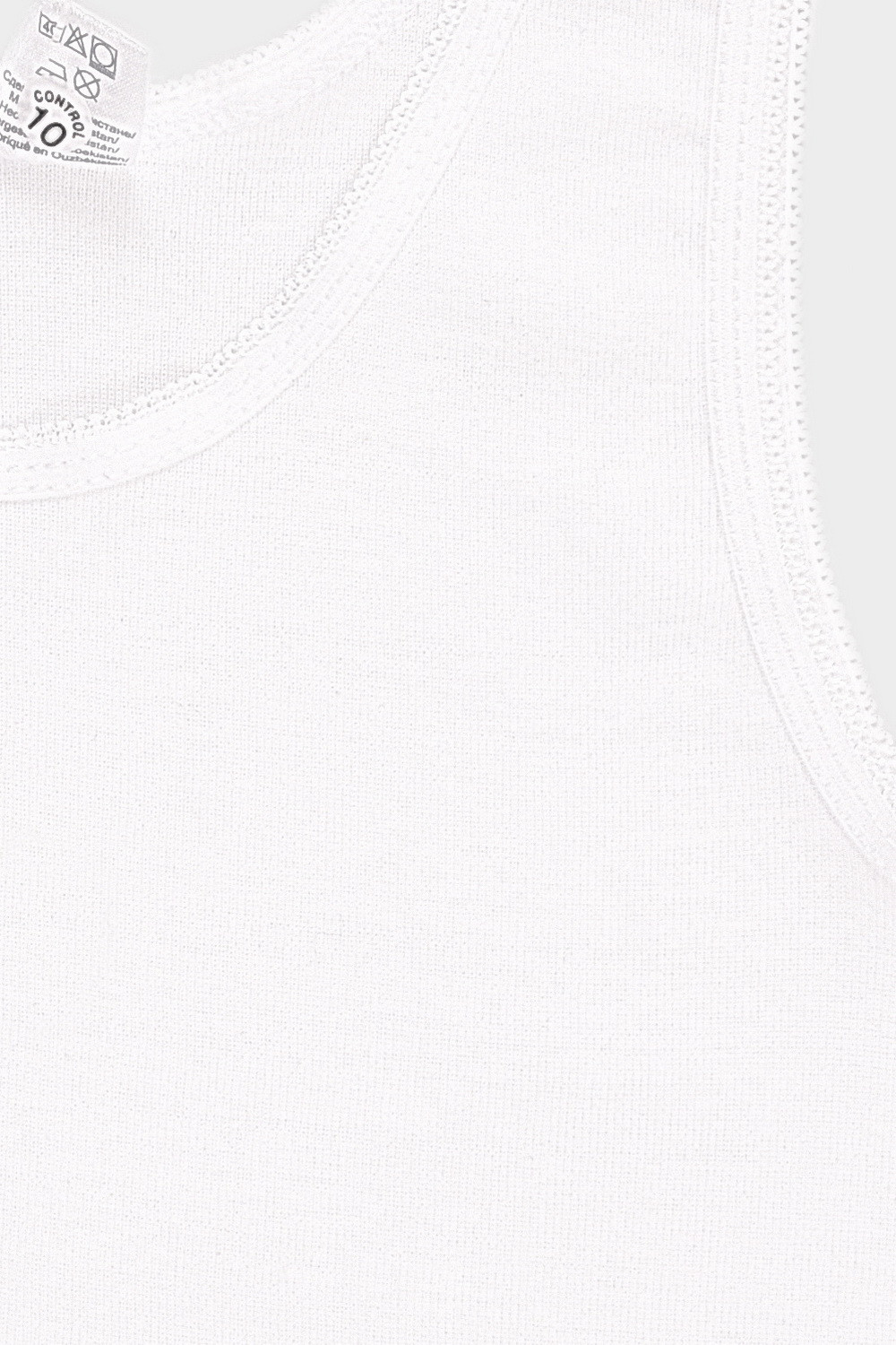 Трикотажные майки в комплекте 2 шт из натурального хлопка. Горловина и проймы украшены эластичной кружевной тесьмой. Изделие сохраняет цвет и форму после многократных стирок. Все трикотажные полотна производятся в соответствии с нормами Швейцарского сертификата ЭкоТекс.