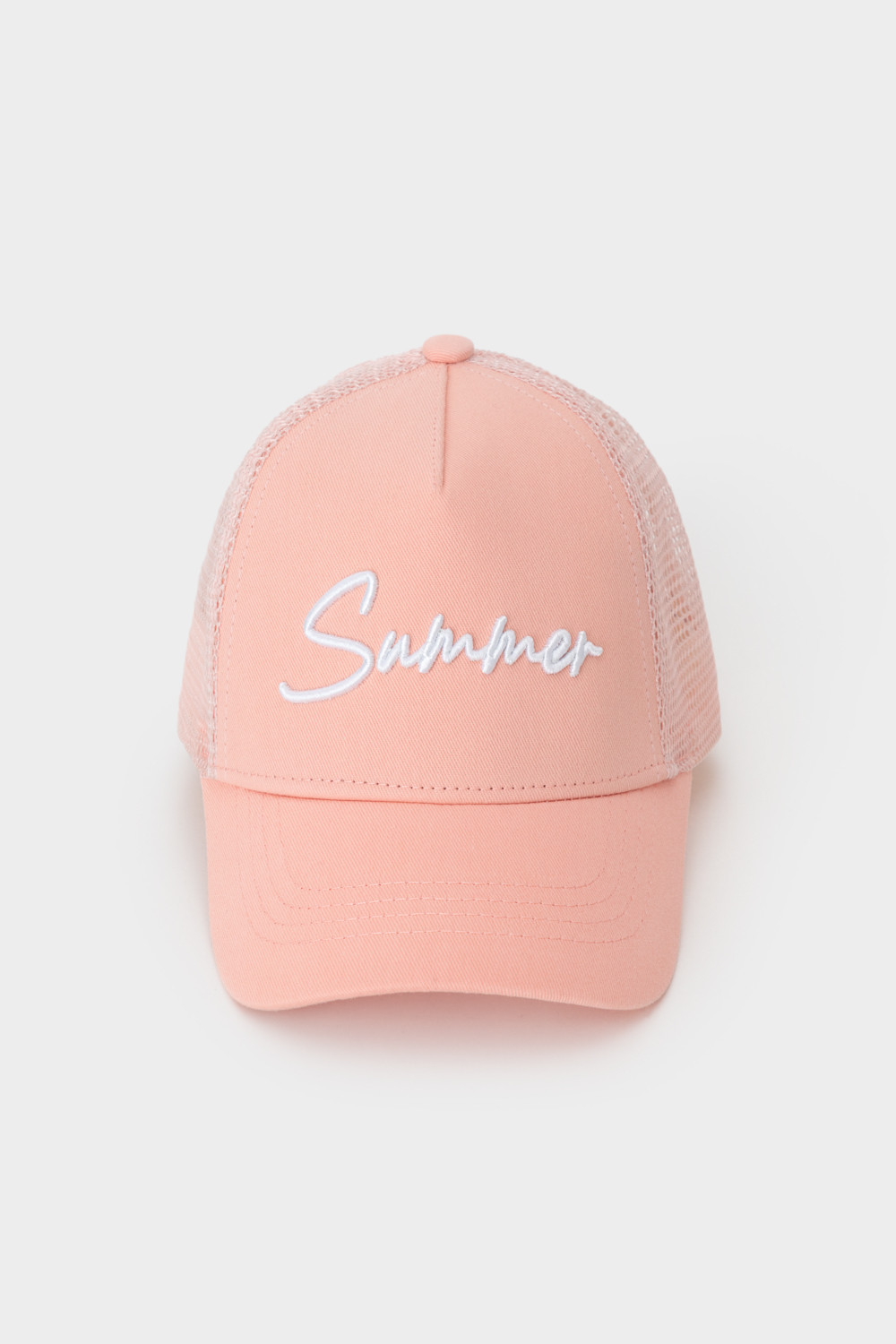 Кепка для девочки из текстиля и сетки. Спереди украшена оригинальной вышивкой. Регулируется по ширине головы и фиксируется на затылке с помощью пластиковой застёжки.