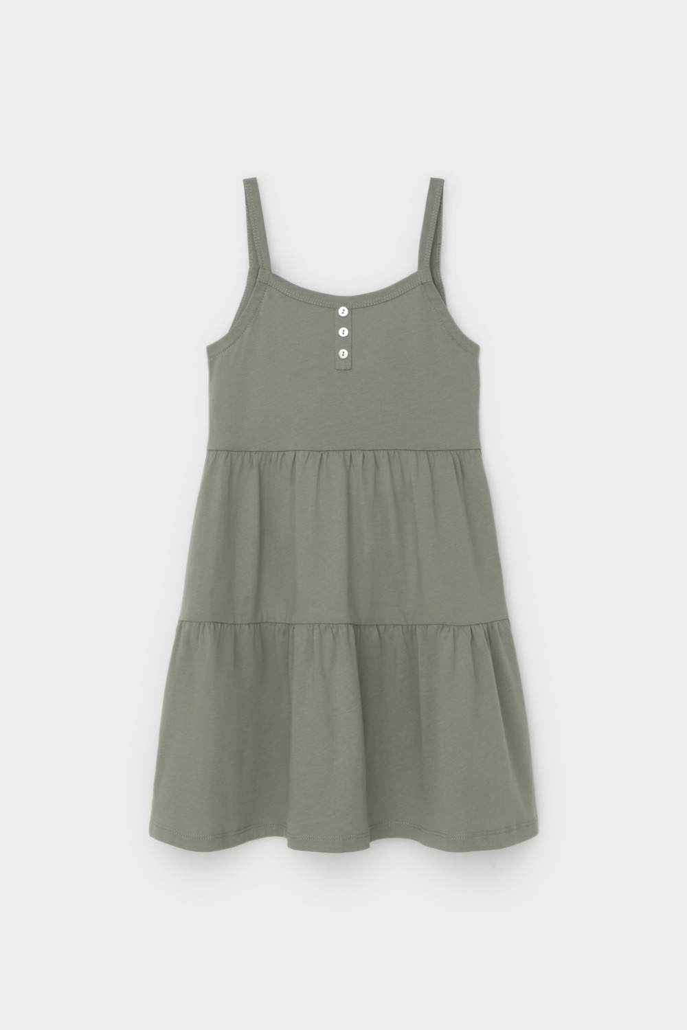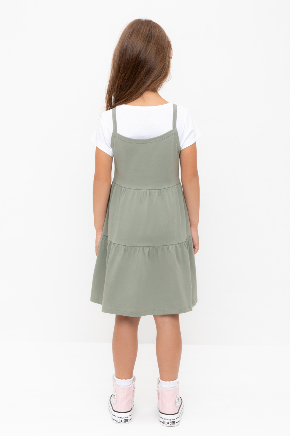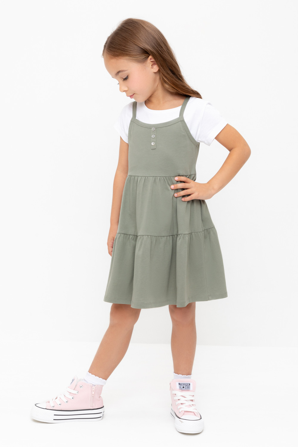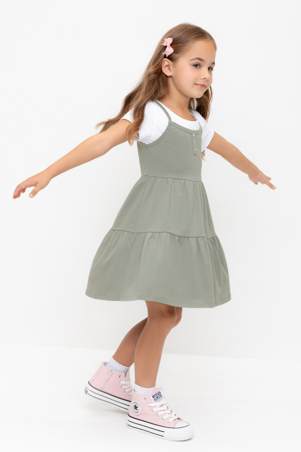 Летний сарафан на бретелях для девочки. Изготовлен из высококачественного трикотажного полотна. Изделие сохраняет цвет и форму после многократных стирок.
