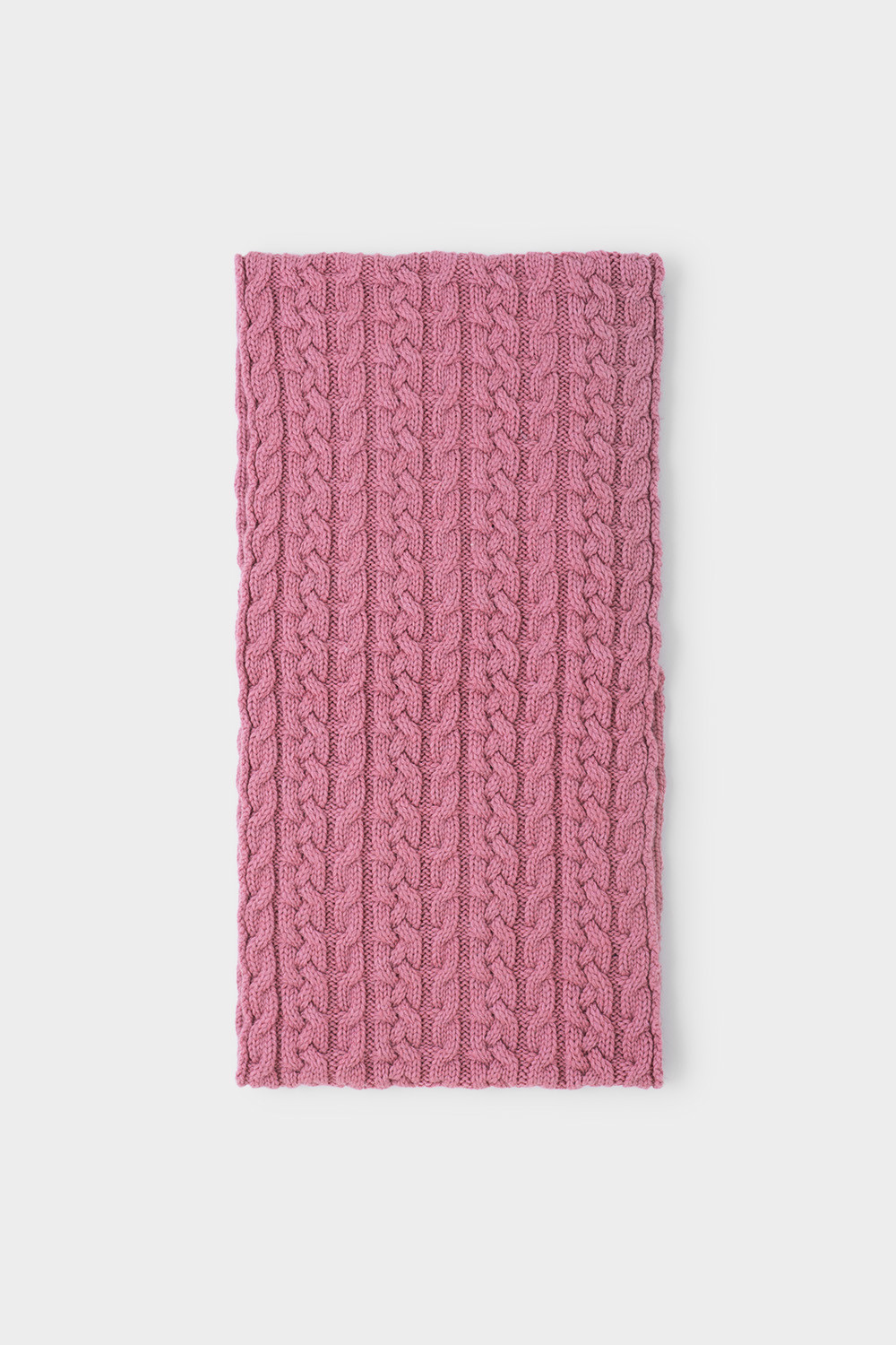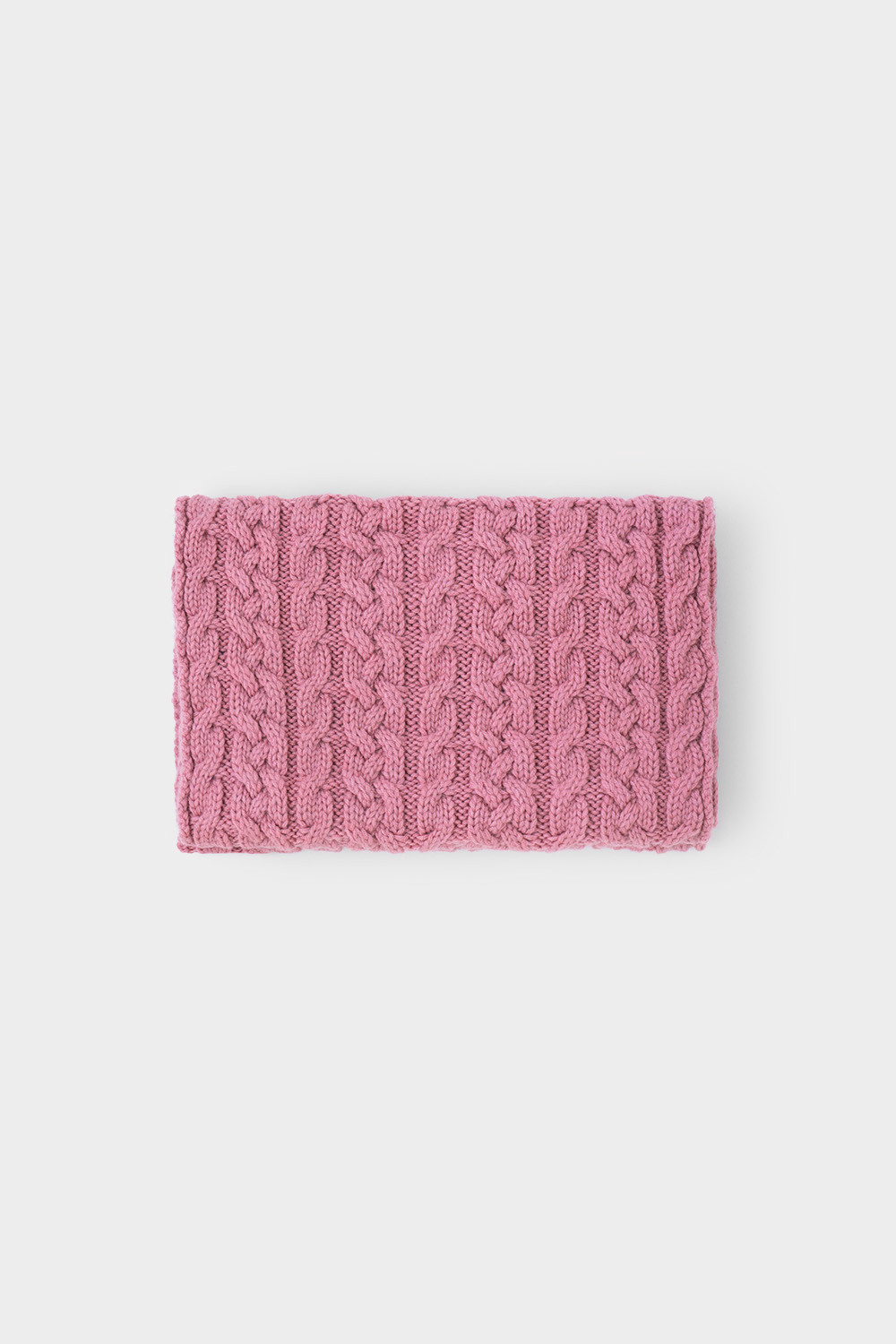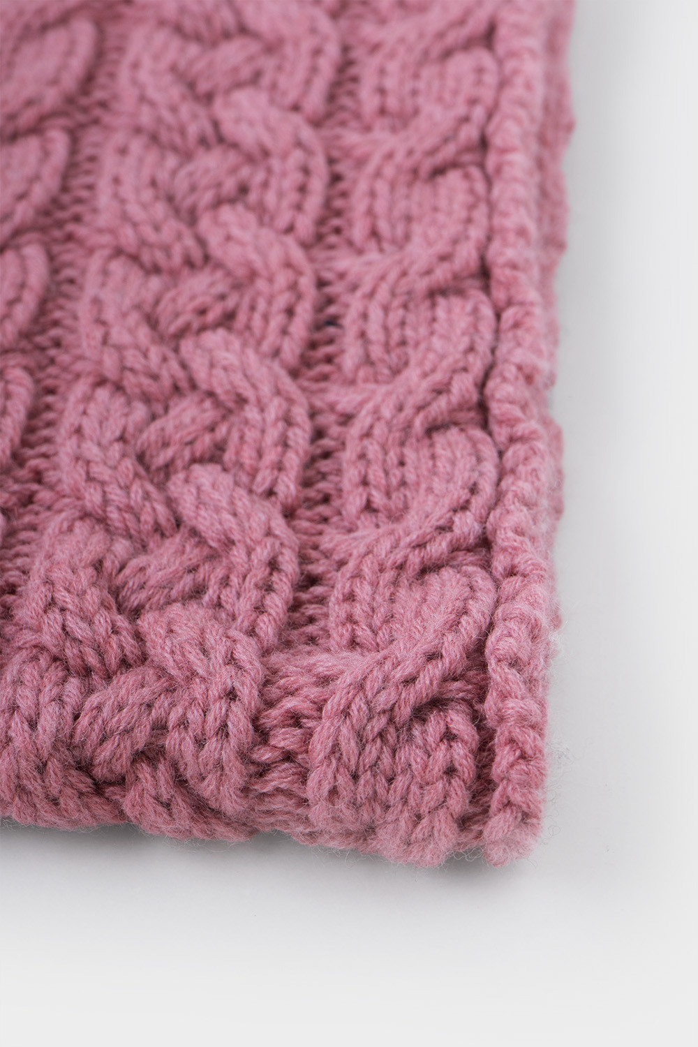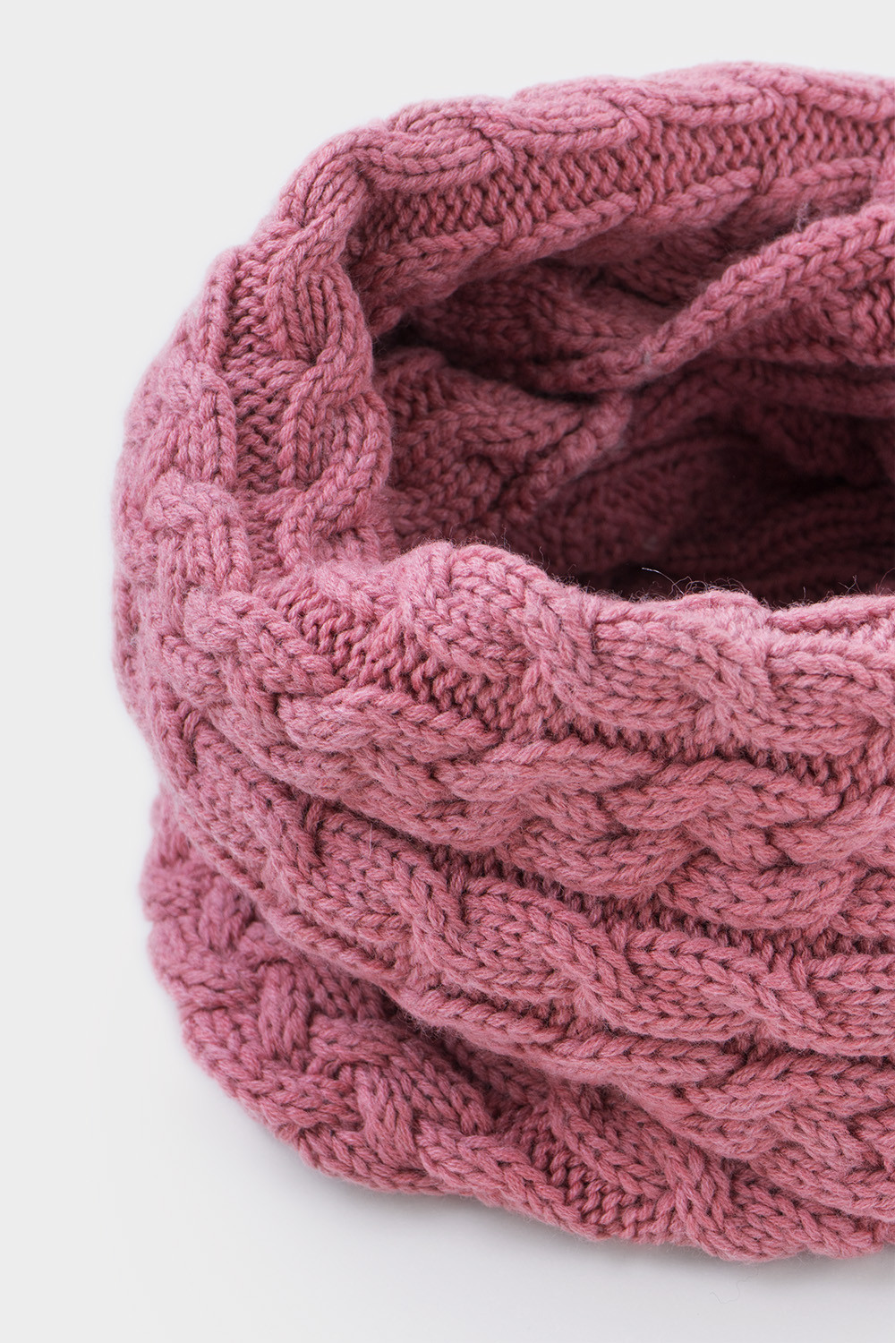 Однотонный снуд из полушерстяной пряжи для девочки, украшен вывязанными косами.