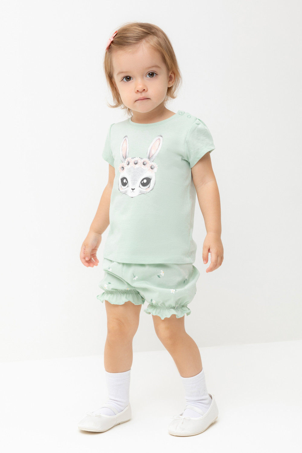 Трикотажные шорты для девочки из высококачественного набивного трикотажа супрем. Оригинальная набивка выполнена из стойких текстильных гипоаллергенных красителей. Изделие сохраняет цвет и форму после многократных стирок.