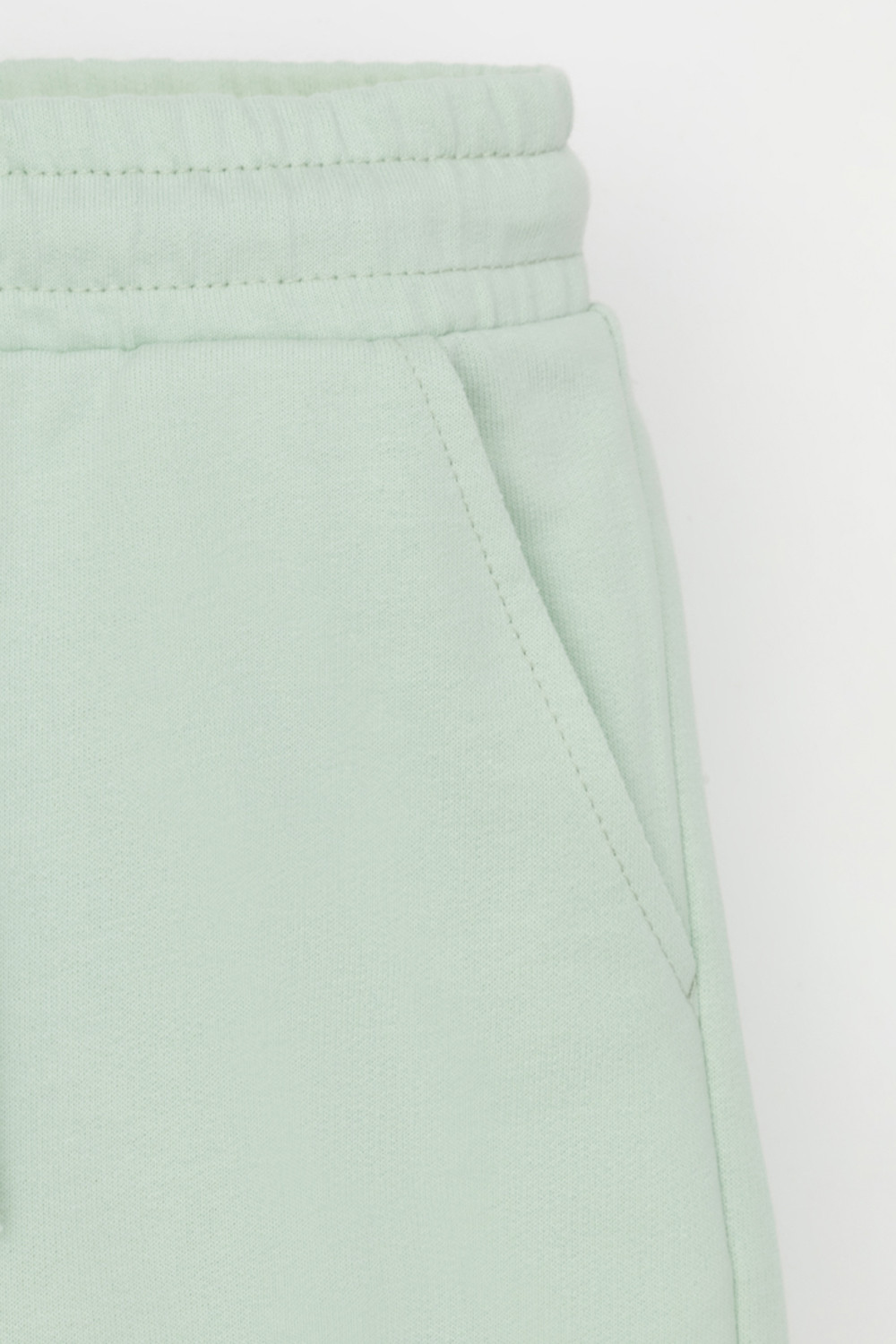 Трикотажные шорты для девочки из петельчатого футера. Эластичный пояс на резинке регулируется по ширине с помощью шнурка, по бокам два удобных кармана.