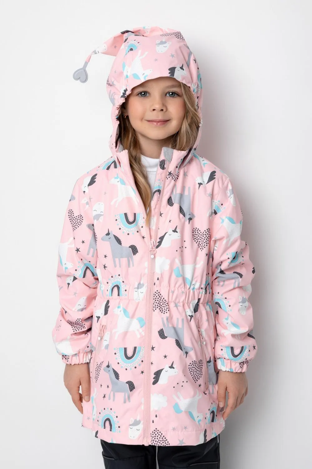 Куртка-ветровка без утеплителя. Рекомендованный температурный режим: от +15° и выше без поддевы и от +8° и выше с поддевой. Верхняя мембранная ткань 1000/1000 с тефлоновым покрытием отталкивает воду и грязь и обладает «дышащими» свойствами. Подкладка выполнена из флиса. Застёгивается на молнию, предусмотрена защита подбородка. Дополнительная ветрозащитная планка внутри. Удлинённая спинка скруглена. Капюшон в виде колпачка с кисточкой на конце не снимается, эластичные вставки по бокам обеспечивают плотное прилегание к голове. Идеальную посадку по фигуре обеспечивает резинка в поясе. Мерцающий патч на рукаве. Манжеты на резинке. Светоотражающие элементы служат для безопасности в тёмное время суток. Боковые карманы на молнии.