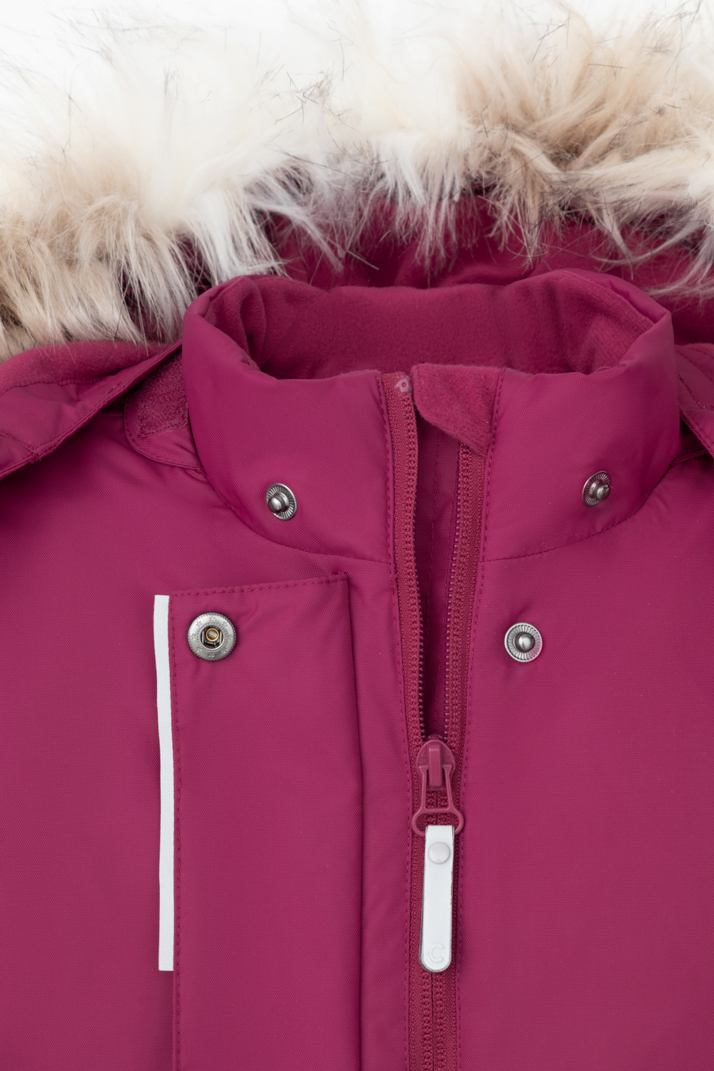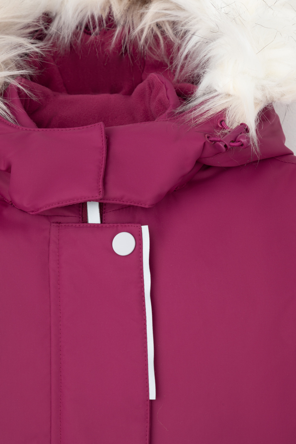 • Съемный капюшон на липучках с отстегивающимся искусственным мехом и утяжкой со стопперами по бокам капюшона.