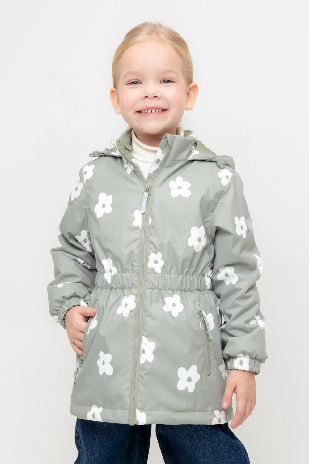 Демисезонная куртка для девочки с утеплителем SEE®: 120 г/м2. Выполнена из мембранной ткани с дополнительной тефлоновой обработкой. Данный вид обработки предохраняет изделие от загрязнения и лучше отводит влагу. Подклад из 100% полиэстера. У изделия предусмотрена защита подбородка. Несъемный капюшон регулируется с помощью эластичной утяжки со стопперами. Низ рукавов и пояс изделия имеют эластичную резинку для лучшего прилегания. По бокам два кармана на молнии. Во всех изделиях верхнего ассортимента для безопасности ребенка предусмотрены светоотражающие элементы.