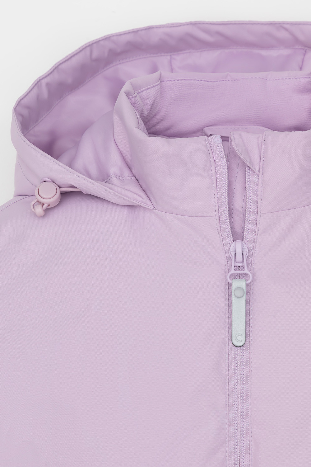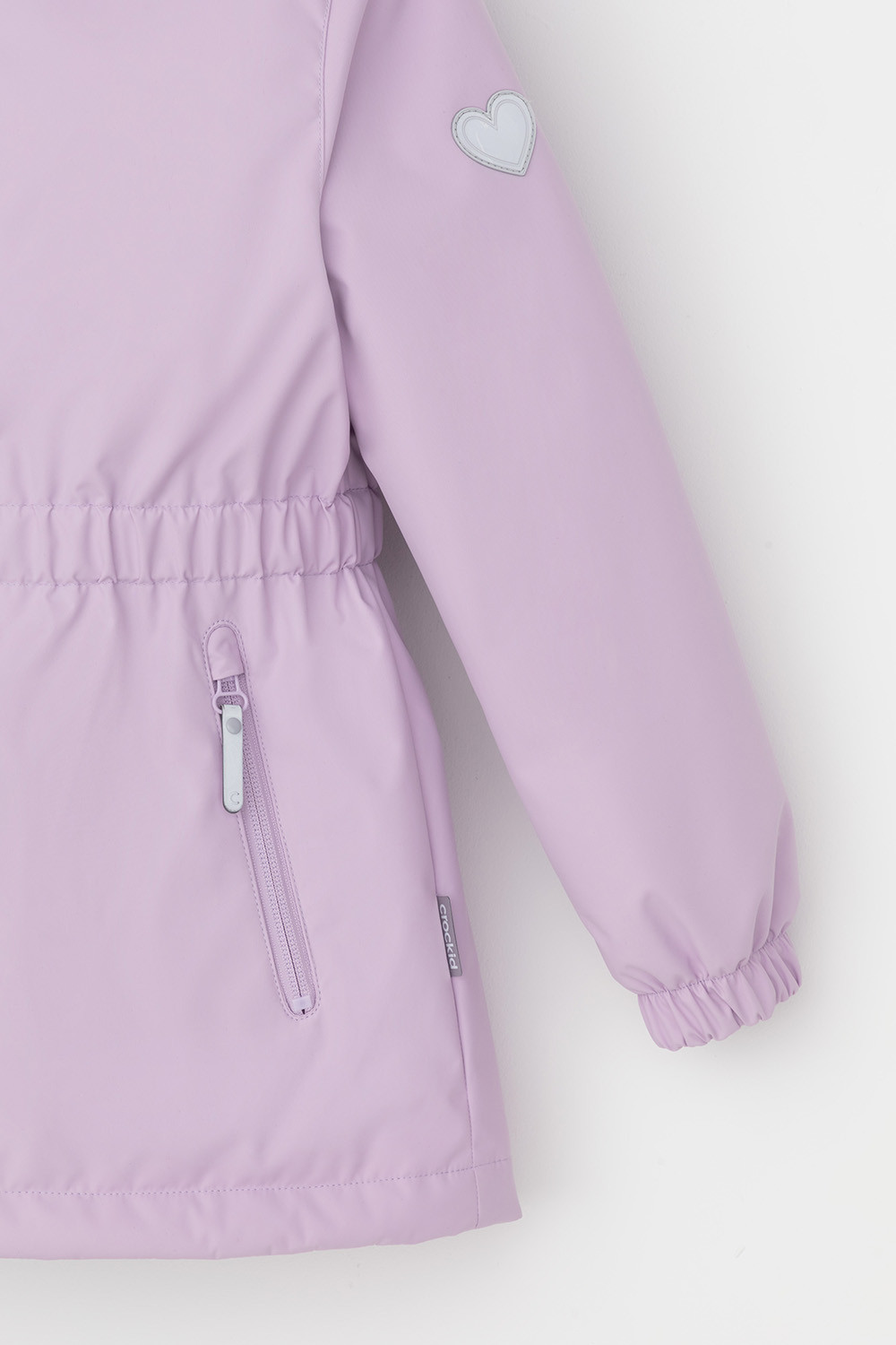 Демисезонная куртка для девочки с утеплителем SEE®: 120 г/м2. Выполнена из мембранной ткани с дополнительной тефлоновой обработкой. Данный вид обработки предохраняет изделие от загрязнения и лучше отводит влагу. Подклад из 100% полиэстера. У изделия предусмотрена защита подбородка. Несъемный капюшон регулируется с помощью эластичной утяжки со стопперами. Низ рукавов и пояс изделия имеют эластичную резинку для лучшего прилегания. По бокам два кармана на молнии. Во всех изделиях верхнего ассортимента для безопасности ребенка предусмотрены светоотражающие элементы.