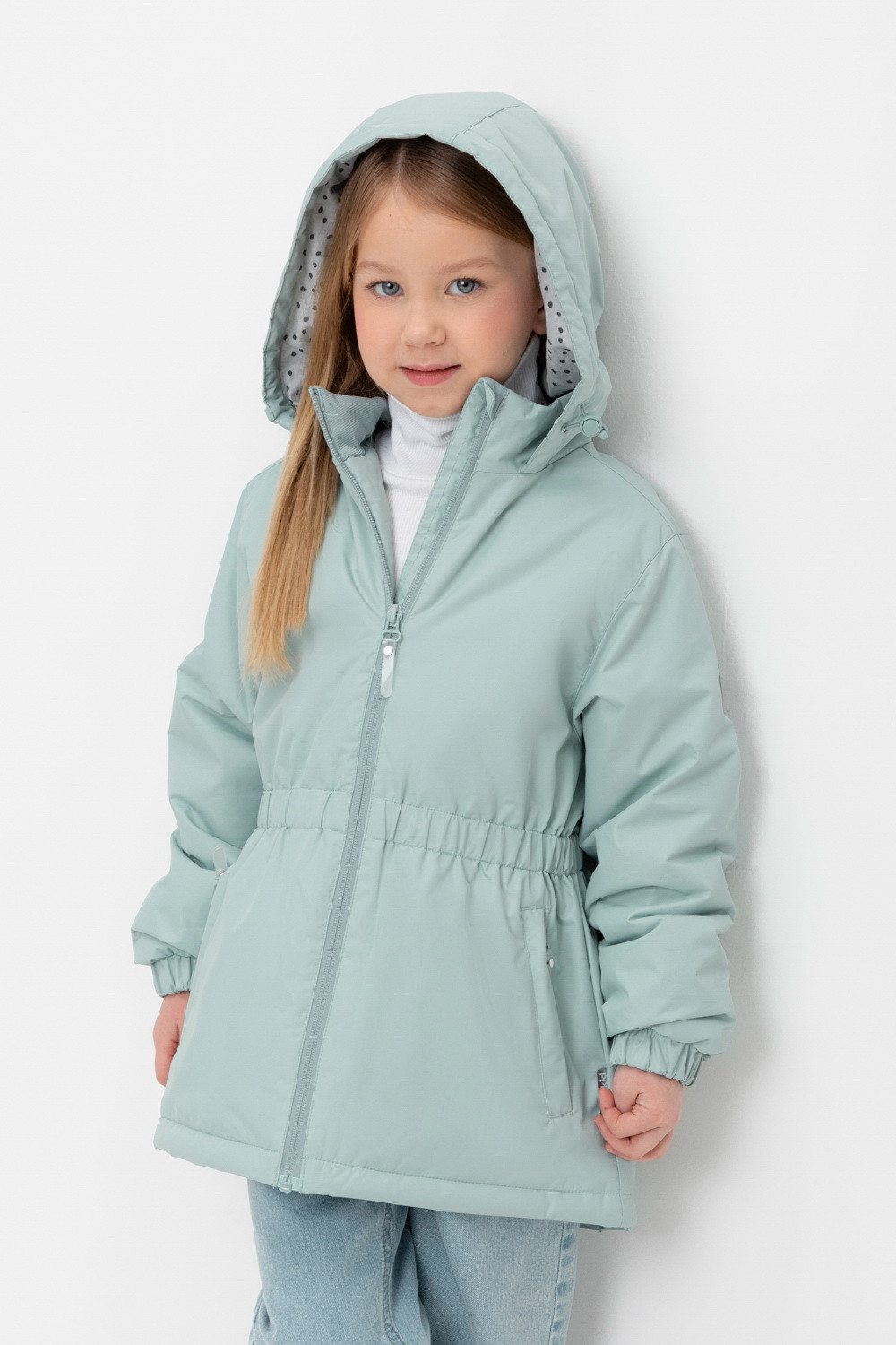 Демисезонная куртка для девочки с утеплителем SEE®: 120 г/м2. Выполнена из мембранной ткани с дополнительной тефлоновой обработкой. Данный вид обработки предохраняет изделие от загрязнения и лучше отводит влагу. Подклад из 100% полиэстера. У изделия предусмотрена защита подбородка. Несъемный капюшон имеет эластичную утяжку со стопперами. Низ рукавов и пояс изделия имеют эластичную резинку для лучшего прилегания. Во всех изделиях верхнего ассортимента для безопасности ребенка предусмотрены светоотражающие элементы.