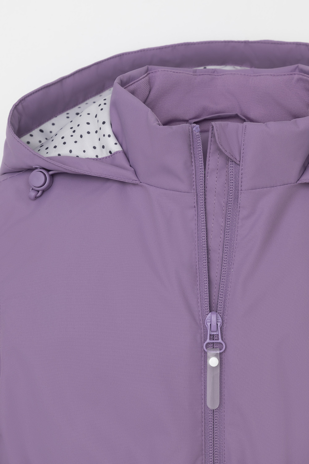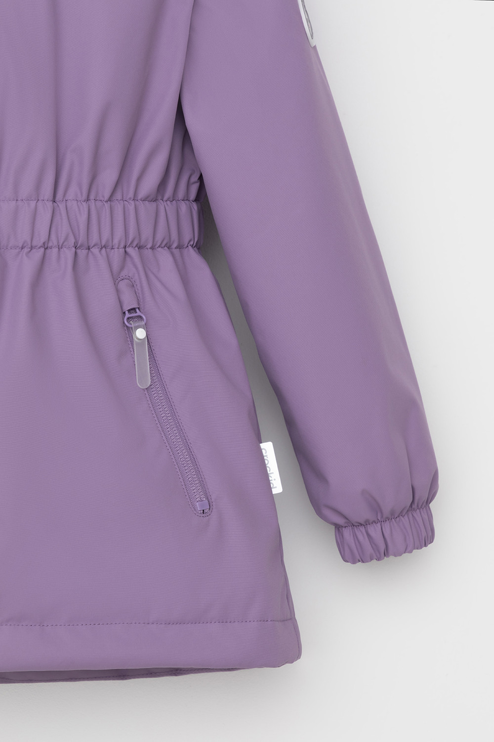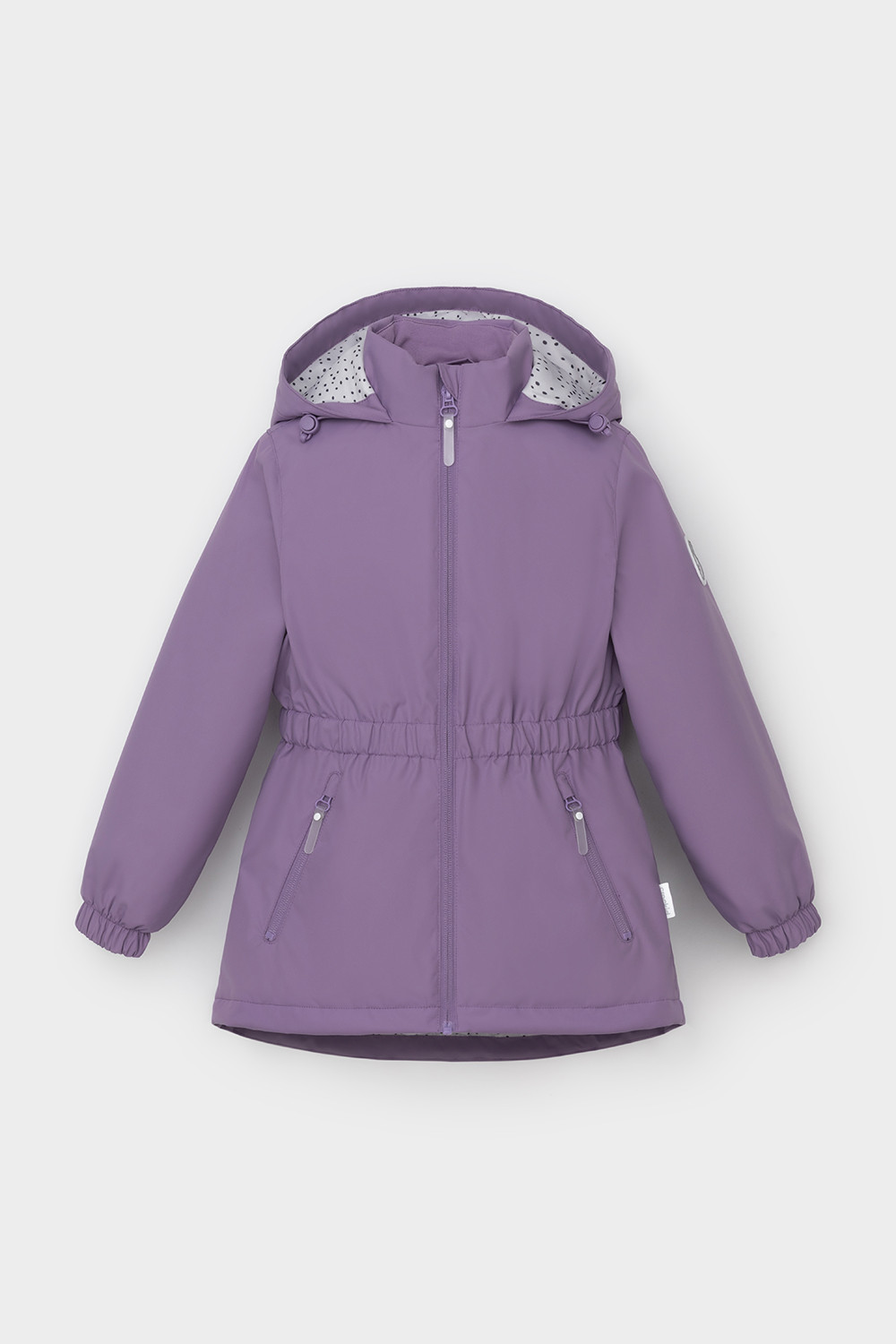 Демисезонная куртка для девочки с утеплителем SEE®: 120 г/м2. Выполнена из мембранной ткани с дополнительной тефлоновой обработкой. Данный вид обработки предохраняет изделие от загрязнения и лучше отводит влагу. Подклад из 100% полиэстера. У изделия предусмотрена защита подбородка. Несъемный капюшон регулируется с помощью эластичной утяжки со стопперами. Низ рукавов и пояс изделия имеют эластичную резинку для лучшего прилегания. По бокам два кармана на молнии. Во всех изделиях верхнего ассортимента для безопасности ребенка предусмотрены светоотражающие элементы.
