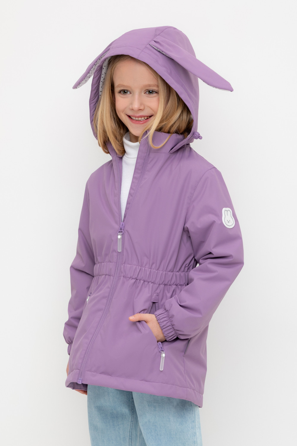 Демисезонная куртка для девочки с утеплителем SEE®: 120 г/м2. Выполнена из мембранной ткани с дополнительной тефлоновой обработкой. Данный вид обработки предохраняет изделие от загрязнения и лучше отводит влагу. Подклад из 100% полиэстера. У изделия предусмотрена защита подбородка. Несъемный капюшон регулируется с помощью эластичной утяжки со стопперами. Низ рукавов и пояс изделия имеют эластичную резинку для лучшего прилегания. По бокам два кармана на молнии. Во всех изделиях верхнего ассортимента для безопасности ребенка предусмотрены светоотражающие элементы.