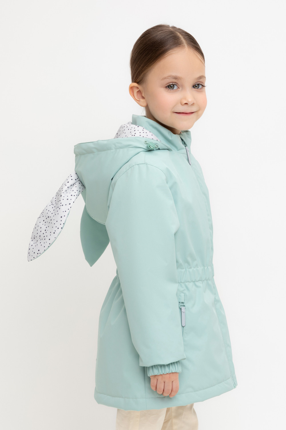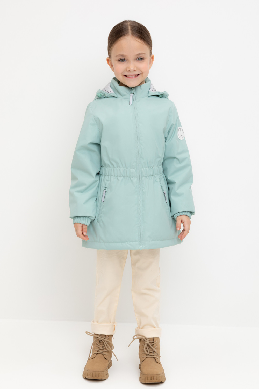 Демисезонная куртка для девочки с утеплителем SEE®: 120 г/м2. Выполнена из мембранной ткани с дополнительной тефлоновой обработкой. Данный вид обработки предохраняет изделие от загрязнения и лучше отводит влагу. Подклад из 100% полиэстера. У изделия предусмотрена защита подбородка. Несъемный капюшон регулируется с помощью эластичной утяжки со стопперами. Низ рукавов и пояс изделия имеют эластичную резинку для лучшего прилегания. По бокам два кармана на молнии. Во всех изделиях верхнего ассортимента для безопасности ребенка предусмотрены светоотражающие элементы.