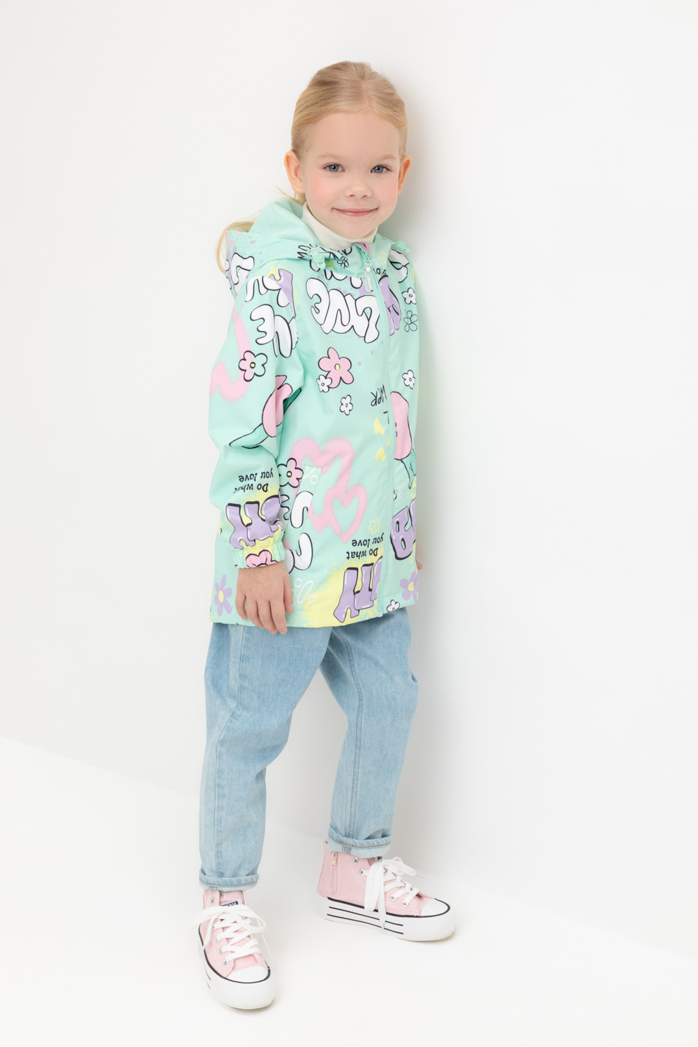 Ветровка для девочки из мембранной ткани с дополнительной тефлоновой обработкой. Верхняя мембранная ткань 1000/1000 с тефлоновым покрытием отталкивает воду и грязь и обладает «дышащими» свойствами. Подкладка выполнена из сетки, 100% полиэстер. У изделия предусмотрена защита подбородка. Несъемный капюшон регулируется с помощью эластичного шнура со стопперами. Низ рукавов имеет эластичную резинку для лучшего прилегания. Низ изделия регулируется эластичной утяжкой со стопперам. Во всех изделиях верхнего ассортимента для безопасности ребенка предусмотрены светоотражающие элементы.