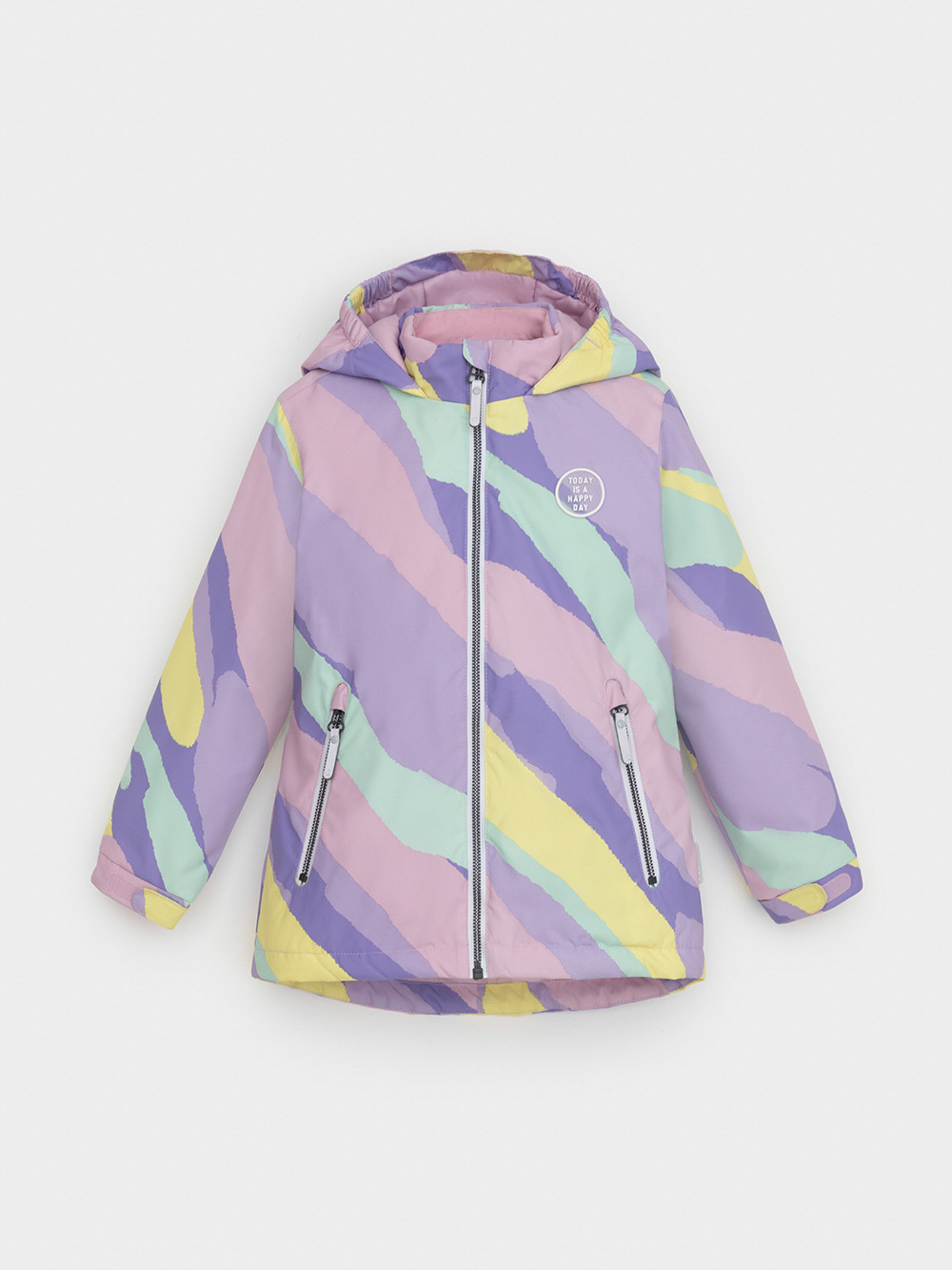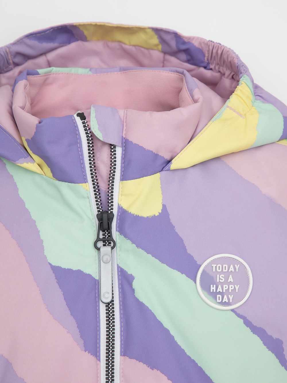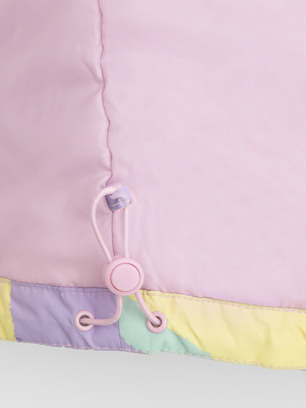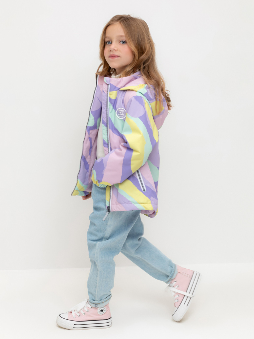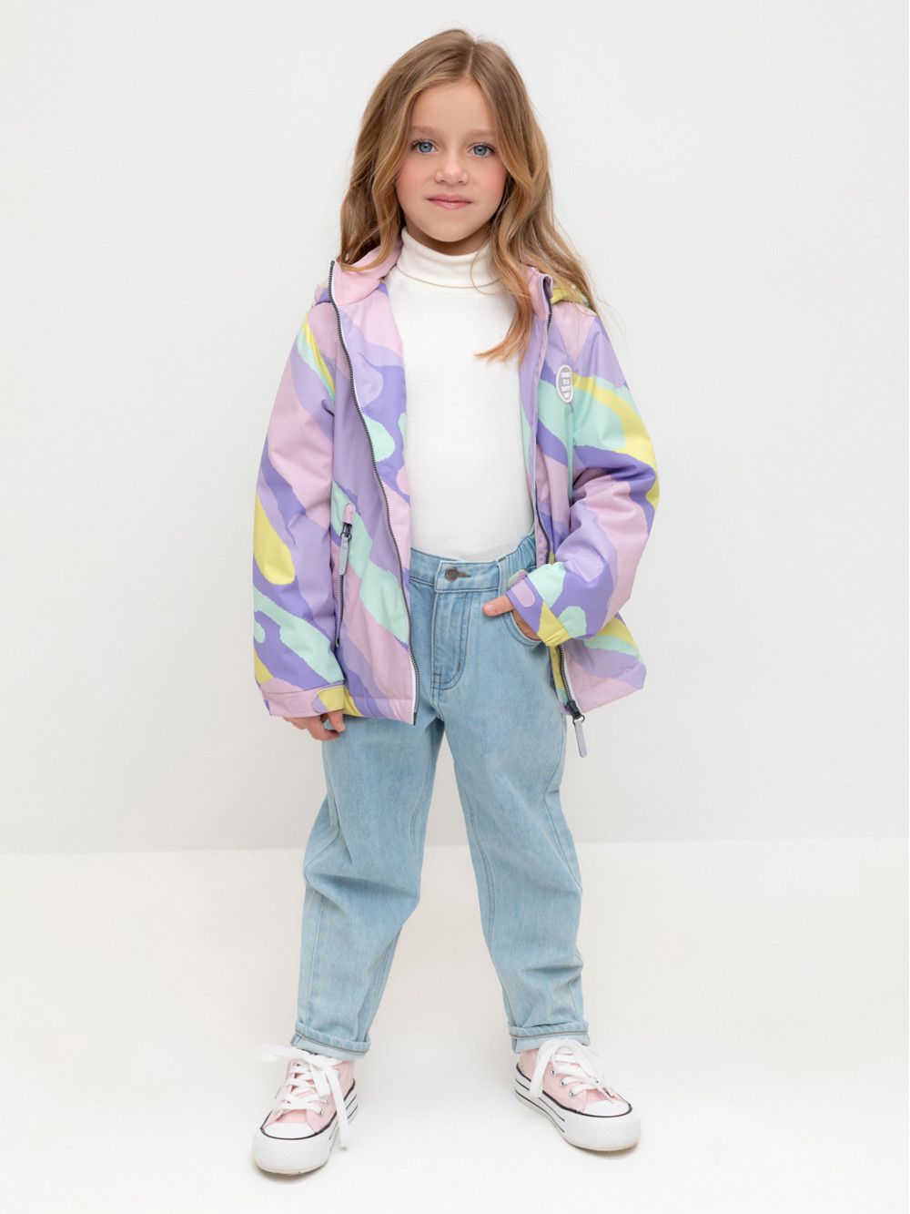 Демисезонная куртка для девочки с утеплителем SEE®: 120 г/м2. Выполнена из мембранной ткани с дополнительной тефлоновой обработкой. Данный вид обработки предохраняет изделие от загрязнения и лучше отводит влагу. Подклад из 100% полиэстера. У изделия предусмотрена защита подбородка. Несъемный капюшон имеет эластичную резинку для лучшего прилегания. Эластичные манжеты регулируются по ширине при помощи липучек. Низ изделия регулируется эластичной утяжкой со стопперам. Во всех изделиях верхнего ассортимента для безопасности ребенка предусмотрены светоотражающие элементы.