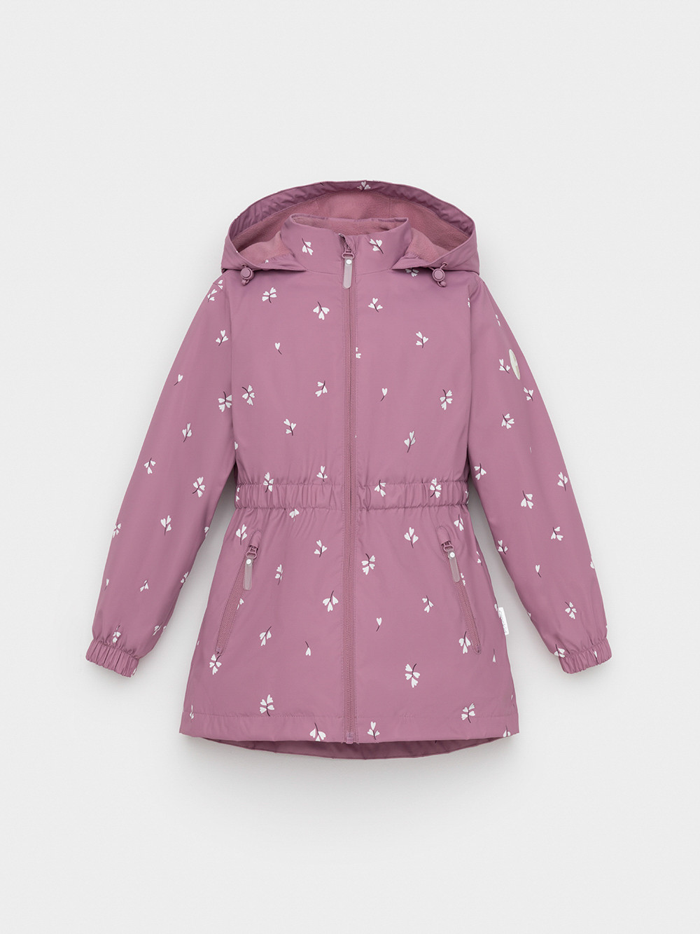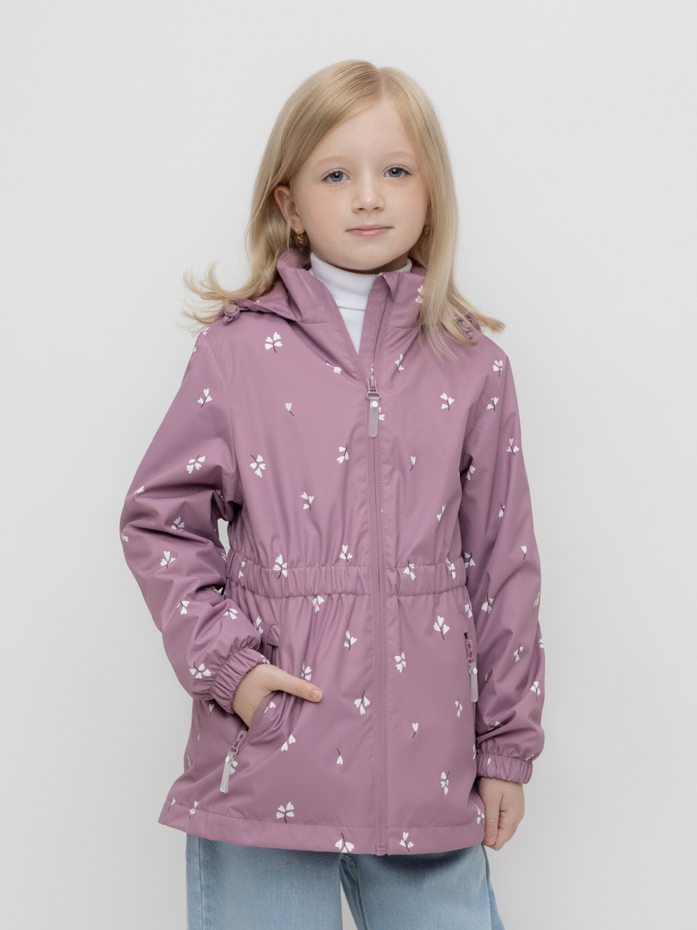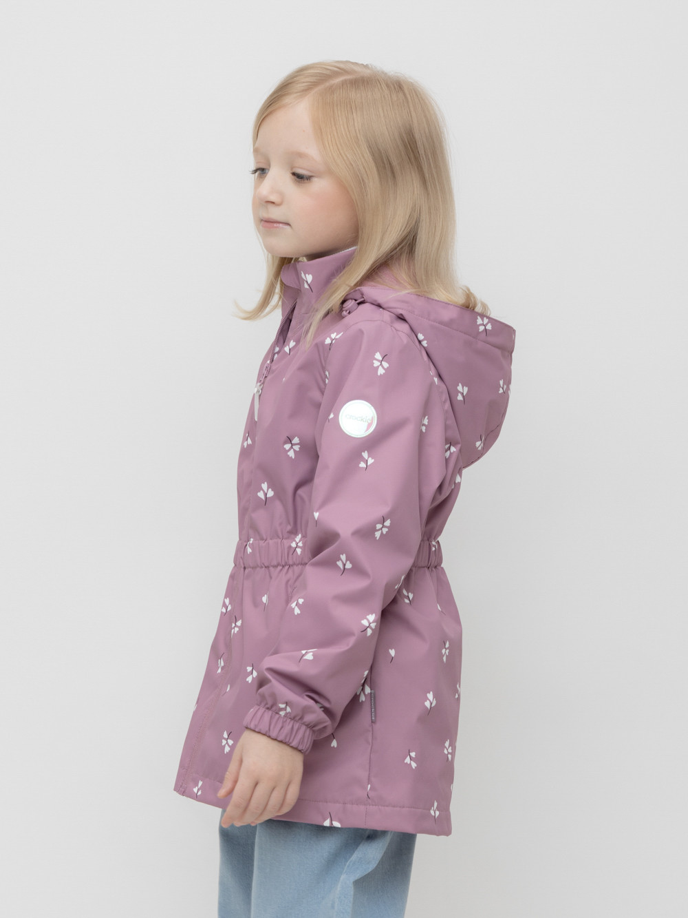 Ветровка для девочки из мембранной ткани с дополнительной тефлоновой обработкой. Верхняя мембранная ткань 1000/1000 с тефлоновым покрытием отталкивает воду и грязь и обладает «дышащими» свойствами. Подкладка выполнена из флиса, 100% полиэстер. У изделия предусмотрена защита подбородка. Несъемный капюшон регулируется с помощью эластичного шнура со стопперами. Низ рукавов и пояс изделия имеют эластичные резинки для лучшего прилегания. Во всех изделиях верхнего ассортимента для безопасности ребенка предусмотрены светоотражающие элементы.