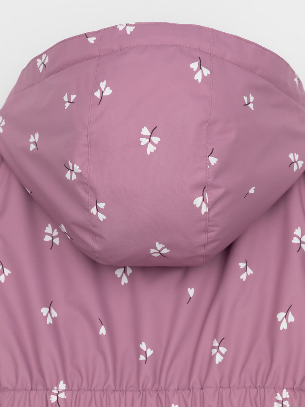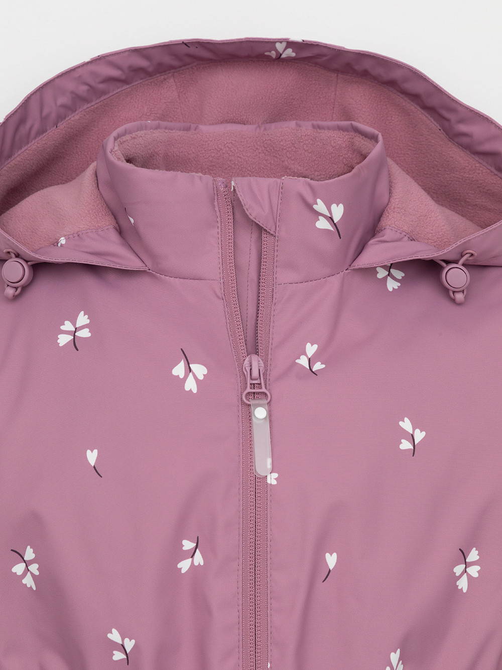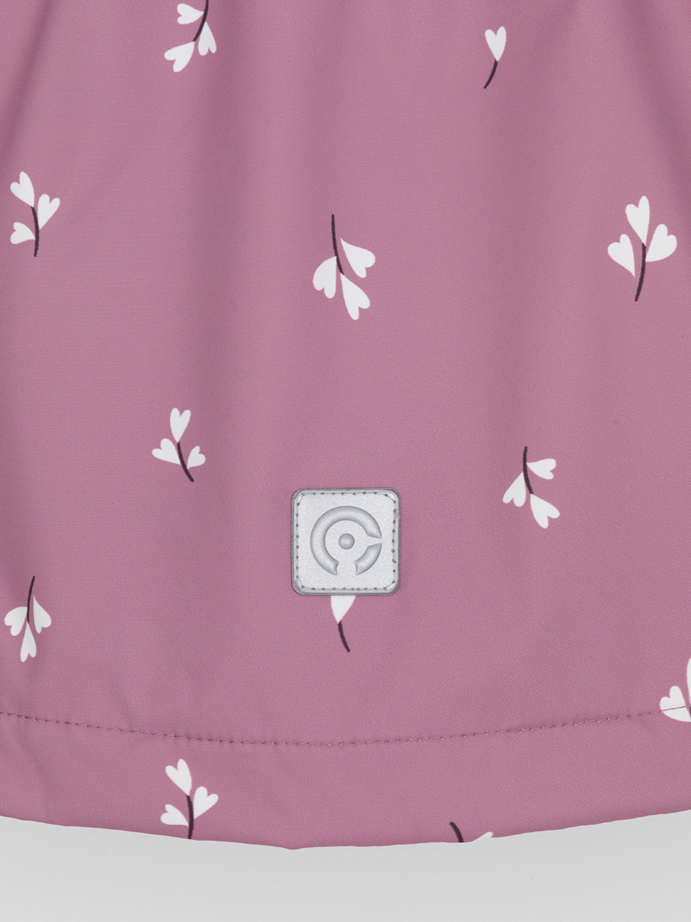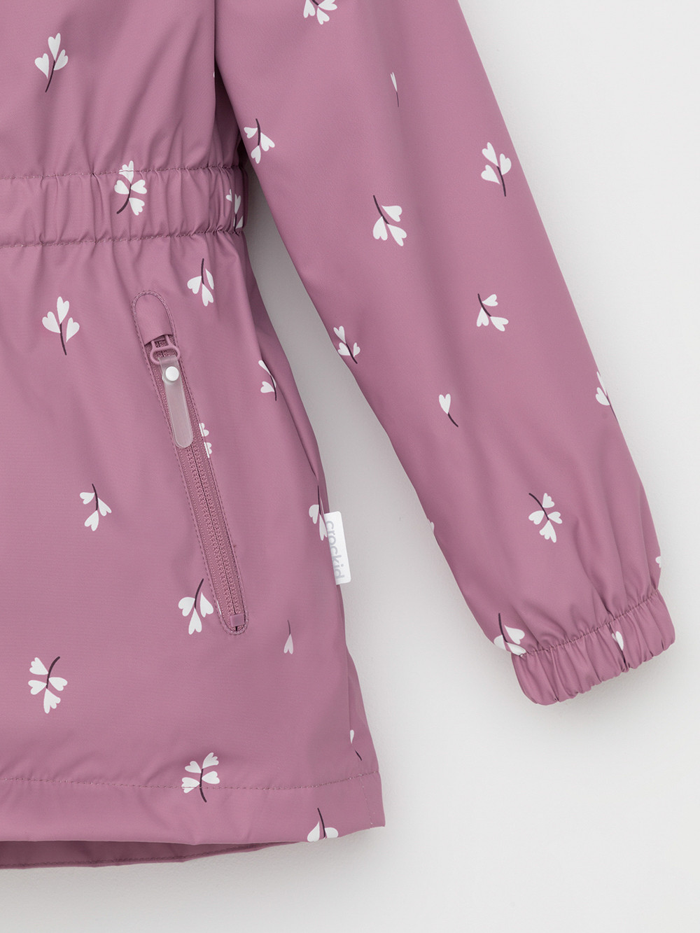 Ветровка для девочки из мембранной ткани с дополнительной тефлоновой обработкой. Верхняя мембранная ткань 1000/1000 с тефлоновым покрытием отталкивает воду и грязь и обладает «дышащими» свойствами. Подкладка выполнена из флиса, 100% полиэстер. У изделия предусмотрена защита подбородка. Несъемный капюшон регулируется с помощью эластичного шнура со стопперами. Низ рукавов и пояс изделия имеют эластичные резинки для лучшего прилегания. Во всех изделиях верхнего ассортимента для безопасности ребенка предусмотрены светоотражающие элементы.