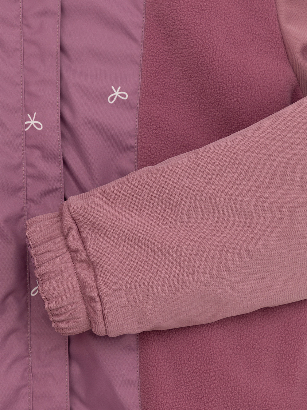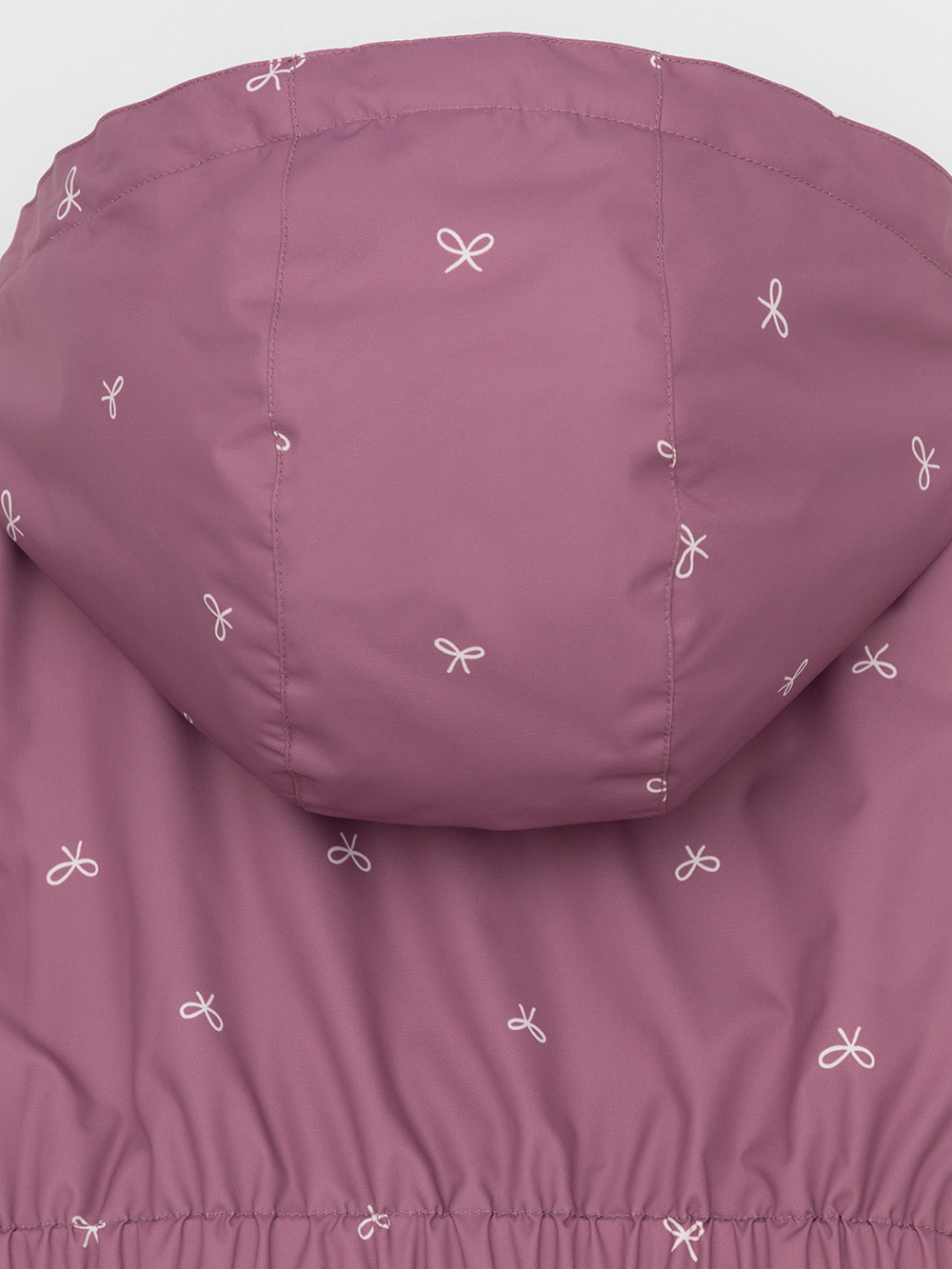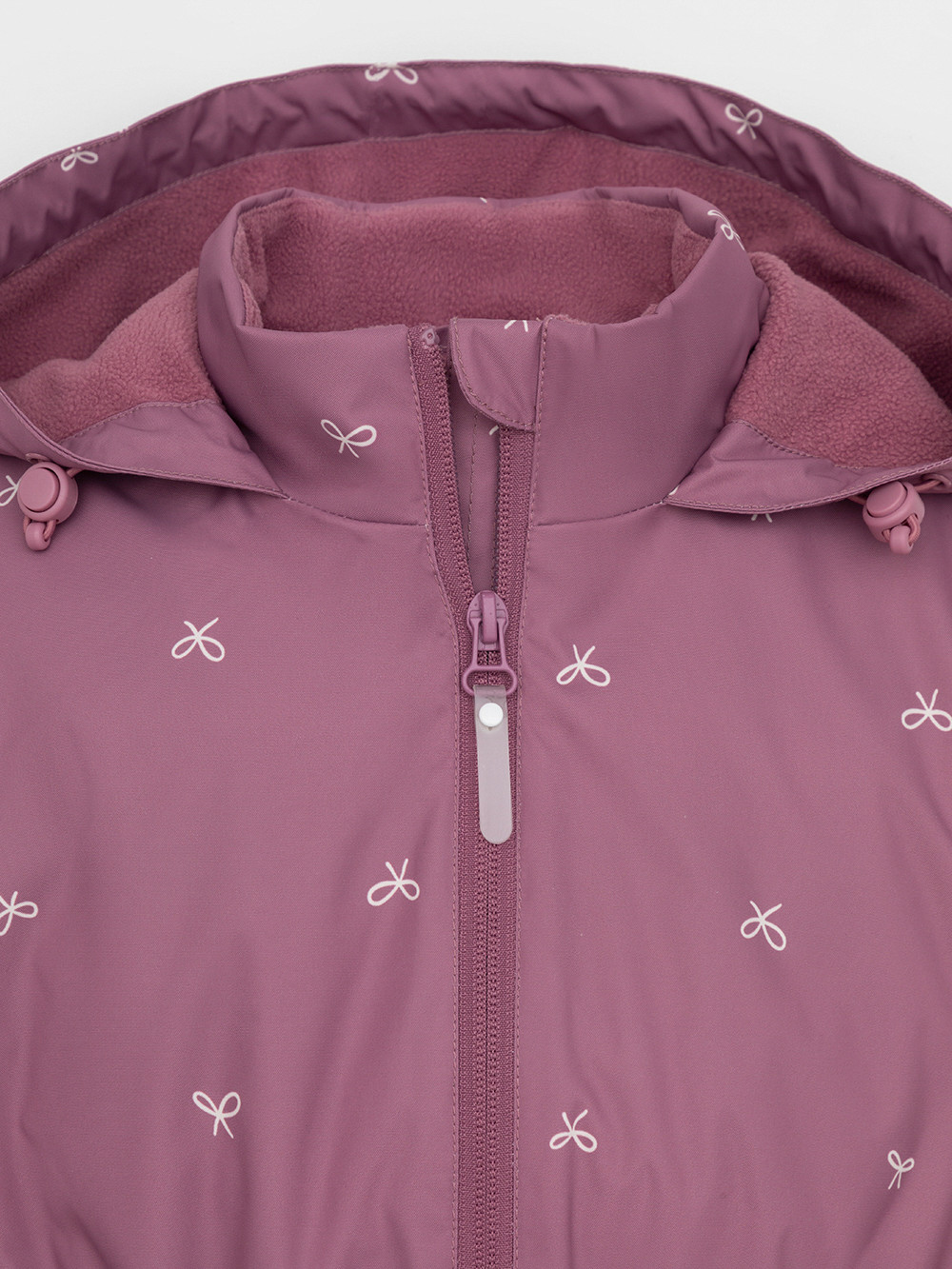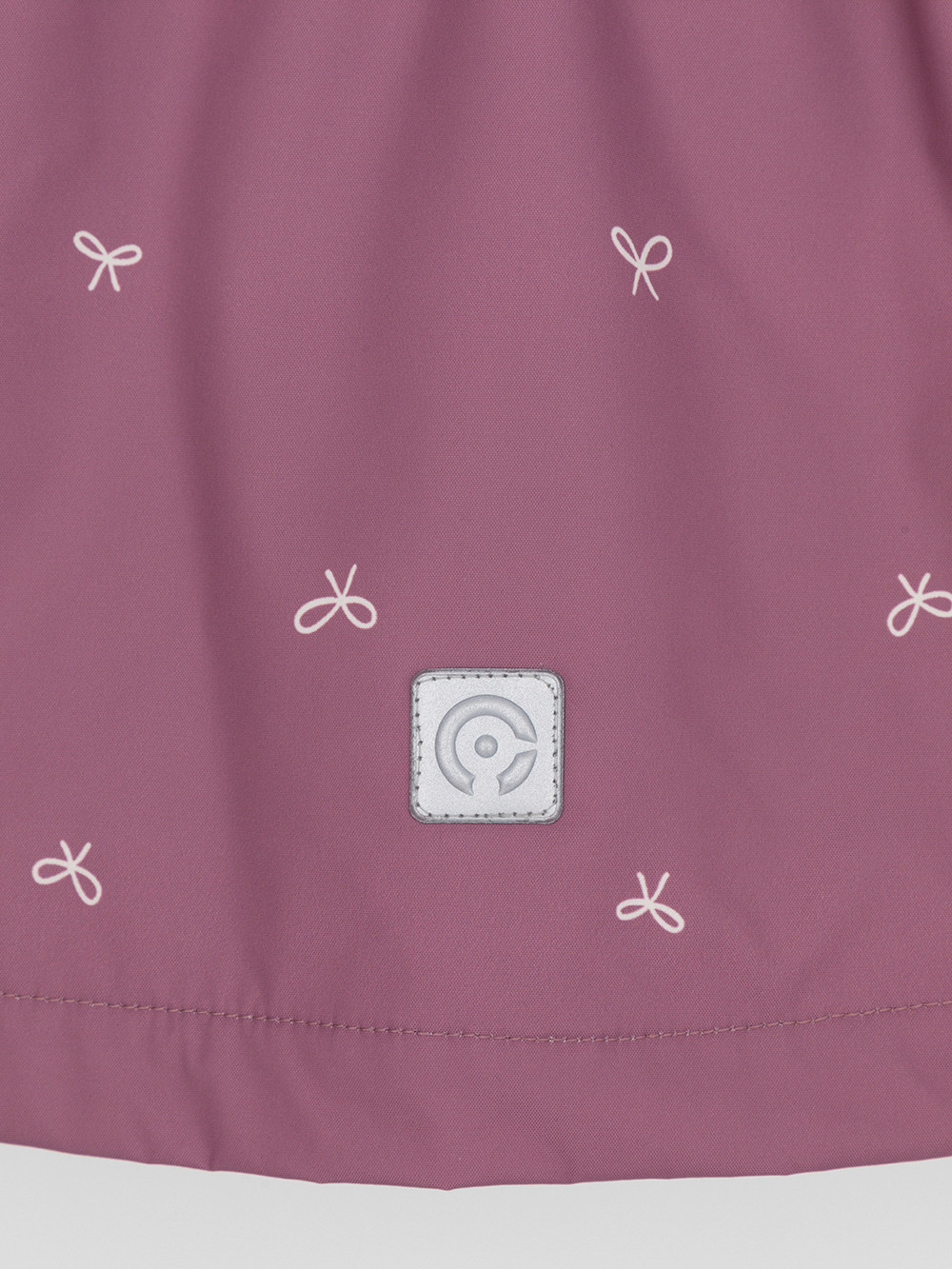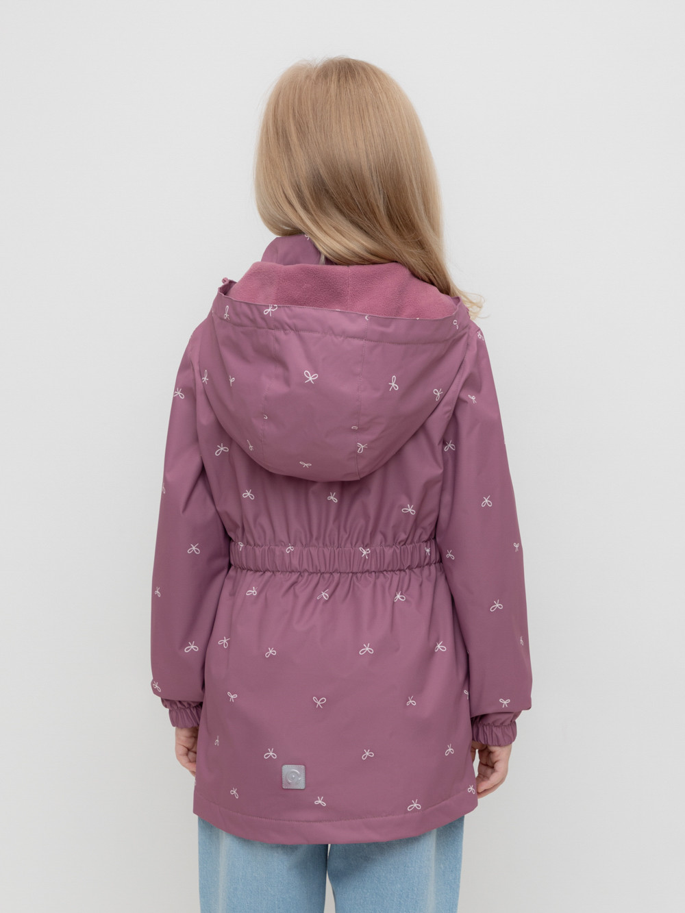 Ветровка для девочки из мембранной ткани с дополнительной тефлоновой обработкой. Верхняя мембранная ткань 1000/1000 с тефлоновым покрытием отталкивает воду и грязь и обладает «дышащими» свойствами. Подкладка выполнена из флиса, 100% полиэстер. У изделия предусмотрена защита подбородка. Несъемный капюшон регулируется с помощью эластичного шнура со стопперами. Низ рукавов и пояс изделия имеют эластичные резинки для лучшего прилегания. Во всех изделиях верхнего ассортимента для безопасности ребенка предусмотрены светоотражающие элементы.