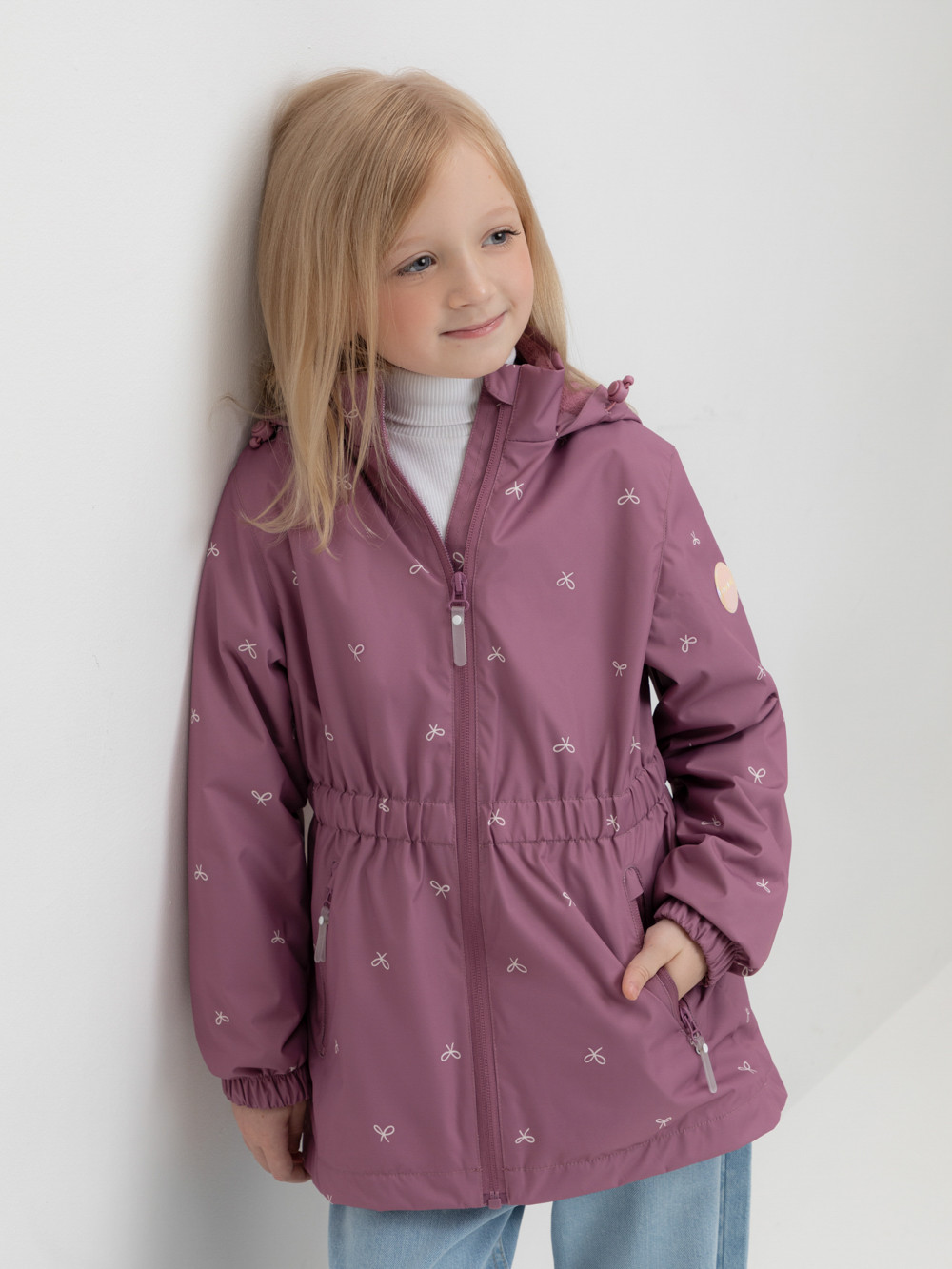 Ветровка для девочки из мембранной ткани с дополнительной тефлоновой обработкой. Верхняя мембранная ткань 1000/1000 с тефлоновым покрытием отталкивает воду и грязь и обладает «дышащими» свойствами. Подкладка выполнена из флиса, 100% полиэстер. У изделия предусмотрена защита подбородка. Несъемный капюшон регулируется с помощью эластичного шнура со стопперами. Низ рукавов и пояс изделия имеют эластичные резинки для лучшего прилегания. Во всех изделиях верхнего ассортимента для безопасности ребенка предусмотрены светоотражающие элементы.