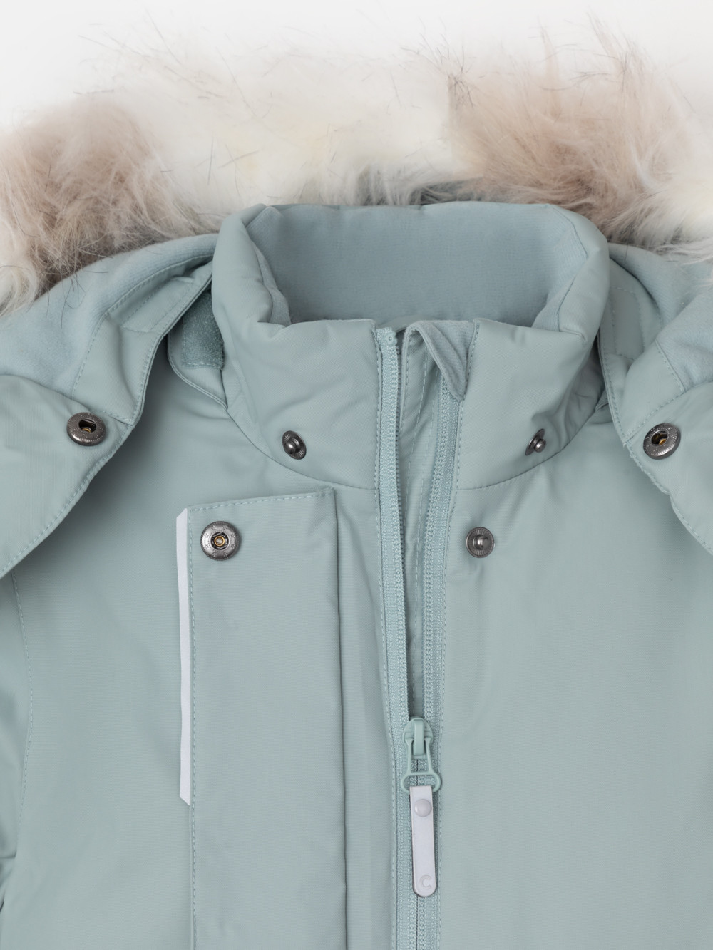 Зимняя куртка для девочки с утеплителем SEE®: 250 г/м2. Выполнена из мембранной ткани с дополнительной тефлоновой обработкой, которая предохраняет изделие от загрязнений и отталкивает влагу. Подклад выполнен из 100% полиэстера Tricot. Куртка застёгивается на молнию, предусмотрена защита подбородка. Съёмный капюшон на кнопках и липучках имеет отстёгивающийся искусственный мех на молнии и эластичную утяжку со стопперами. На рукавах мягкие внутренние манжеты. По бокам два кармана с клапанами на кнопках. Изнутри кулиска по талии для регулировки ширины куртки. Во всех изделиях верхнего ассортимента для безопасности ребёнка предусмотрены светоотражающие элементы.